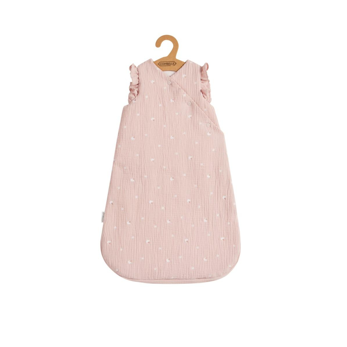 | Plus produit | Gigoteuse sans manche 1er âge, double gaze de coton bio brodée, doublée voile de coton bio, padding recyclé, TOG 2 , taille:1-6M, rose |