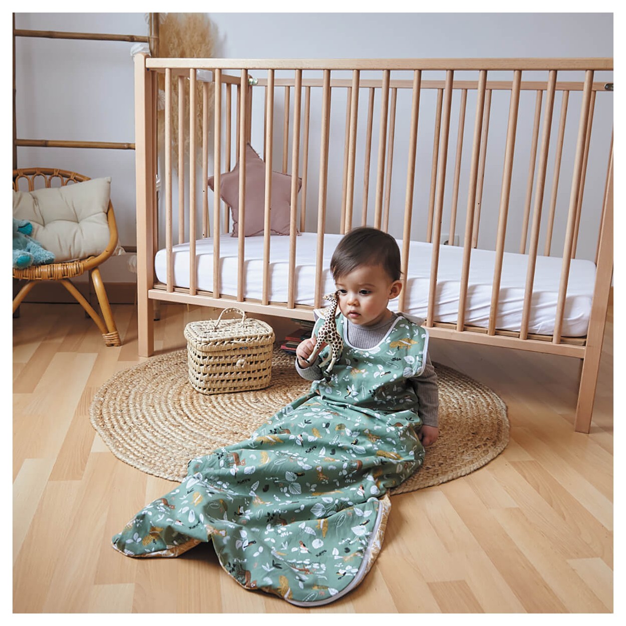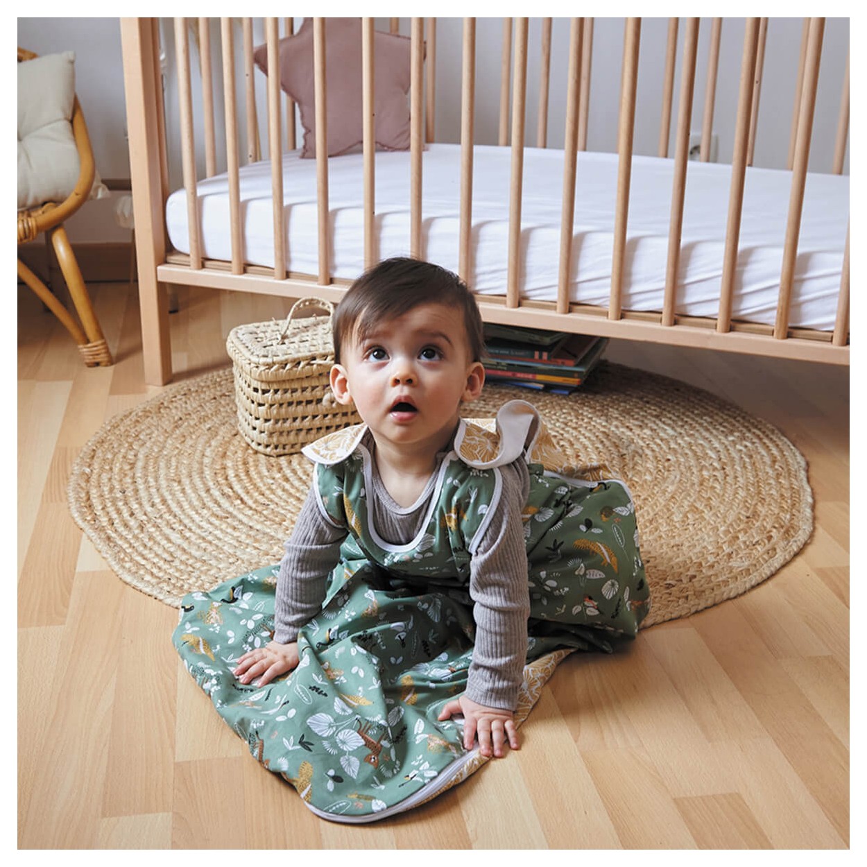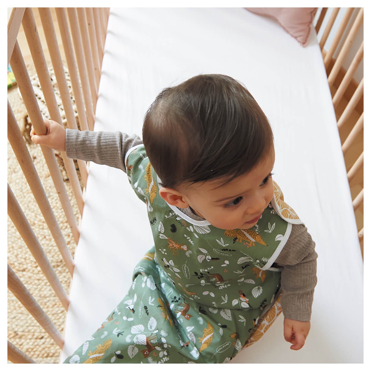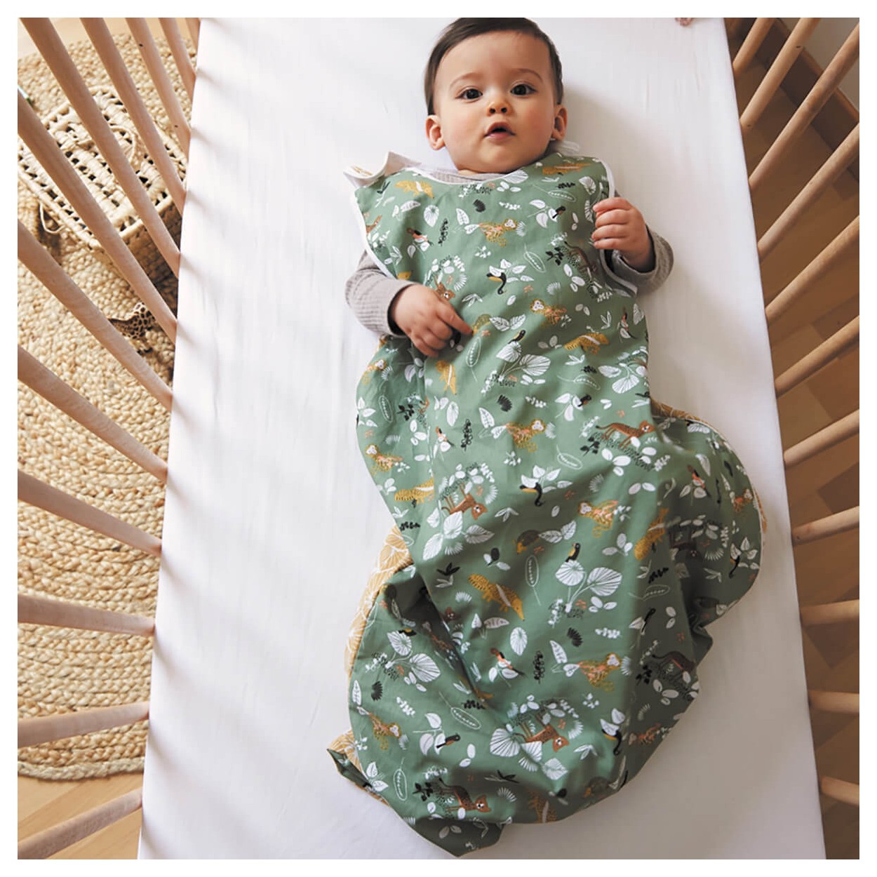 Une gigoteuse d'été évolutive et légèreCette gigoteuse bébé évolutive est parfaite pour chouchouter bébé les nuits d'été et le garder bien au chaud. Évolutive, elle est réglable sur 2 tailles différentes et passe ainsi d'une taille de 80cm à une taille de 100cm en quelques secondes. Vous pourrez facilement la réduire ou l'allonger grâce à ses 2 boutons pressions très simple à utiliser.Le TOG de la gigoteuse est de 0.5 ce qui correspond à un modèle été, pour des pièces à températures ambiantes douces. La douillette évolutive Safari de Tinéo viendra remplacer la couette ou la couverture, qui ne sont pas conseillés pour les tout-petits. Cette turbulette réglable accueillera bébé dès 9 mois et jusqu'à 36 mois pour son plus grand bonheur.La gigoteuse réglable idéale à emporter en vacances d'étéVous partez en vacances au soleil ? Glissez cette gigoteuse dans la valise de bébé, son épaisseur est idéale pour des nuits estivales. Pratique, elle est entièrement ouvrable afin de faciliter la mise en place de bébé à l'intérieur. La matière extérieure est légère et la matière intérieure est en jersey ce qui la rend très agréable et confortable pour bébé. La gigoteuse peut être lavée facilement en machine, à une température de 30 degrés.Ce que vous ne saviez peut-être pas sur les gigoteuses ?