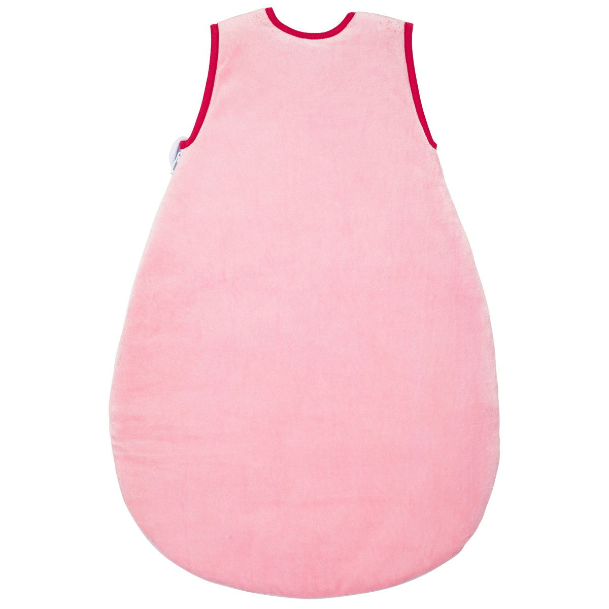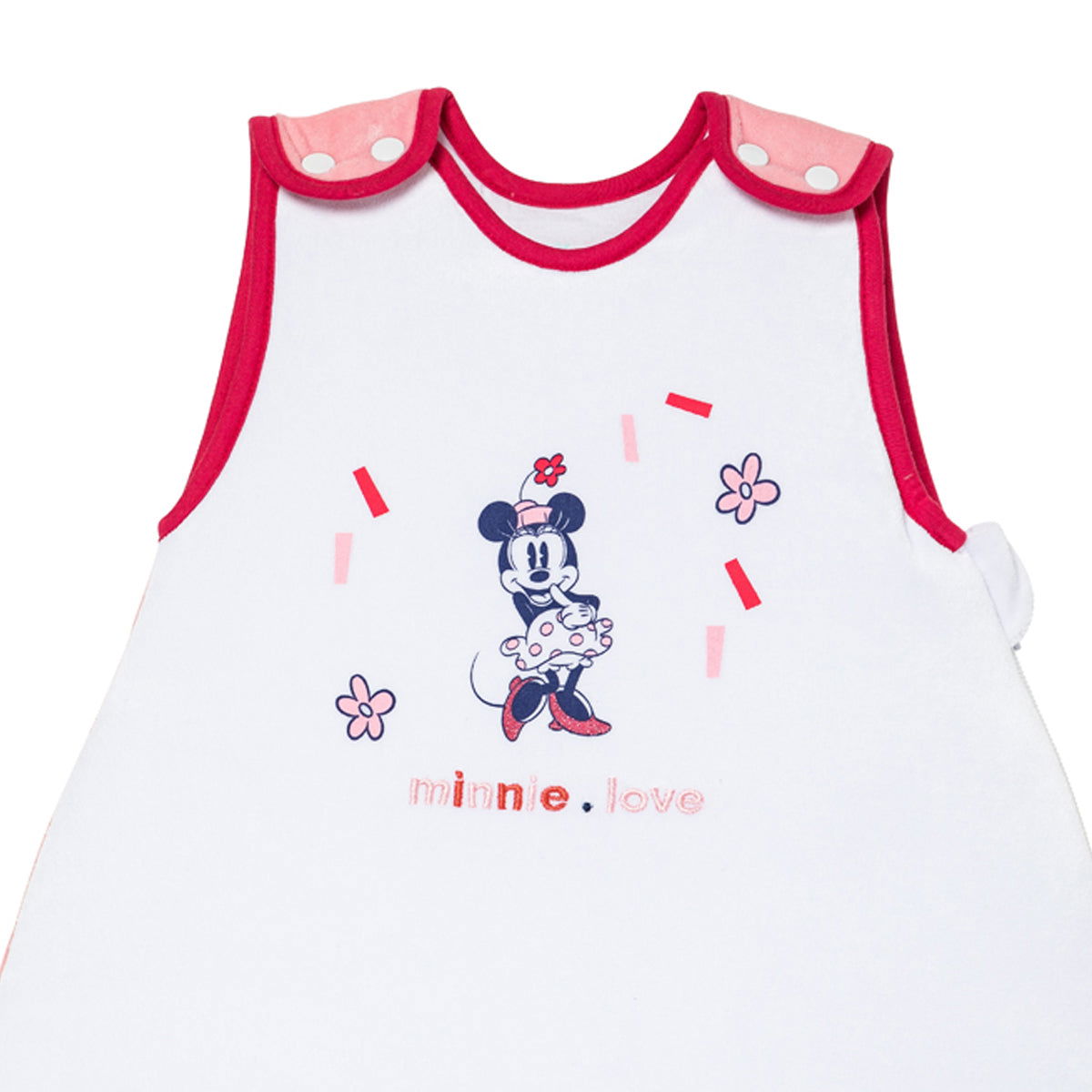 Dans un joli mélange de blanc et de roses, elle est ornée d'impressions et de broderies qualitatives Minnie. Une jolie découpe dans le bas de la gigoteuse rappel le velours rose du dos et ajoute une touche de fantaisie à la gigoteuse.