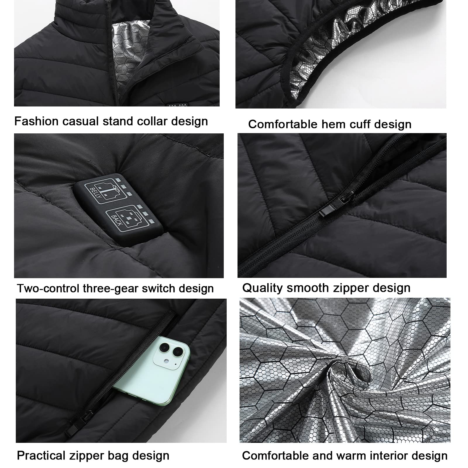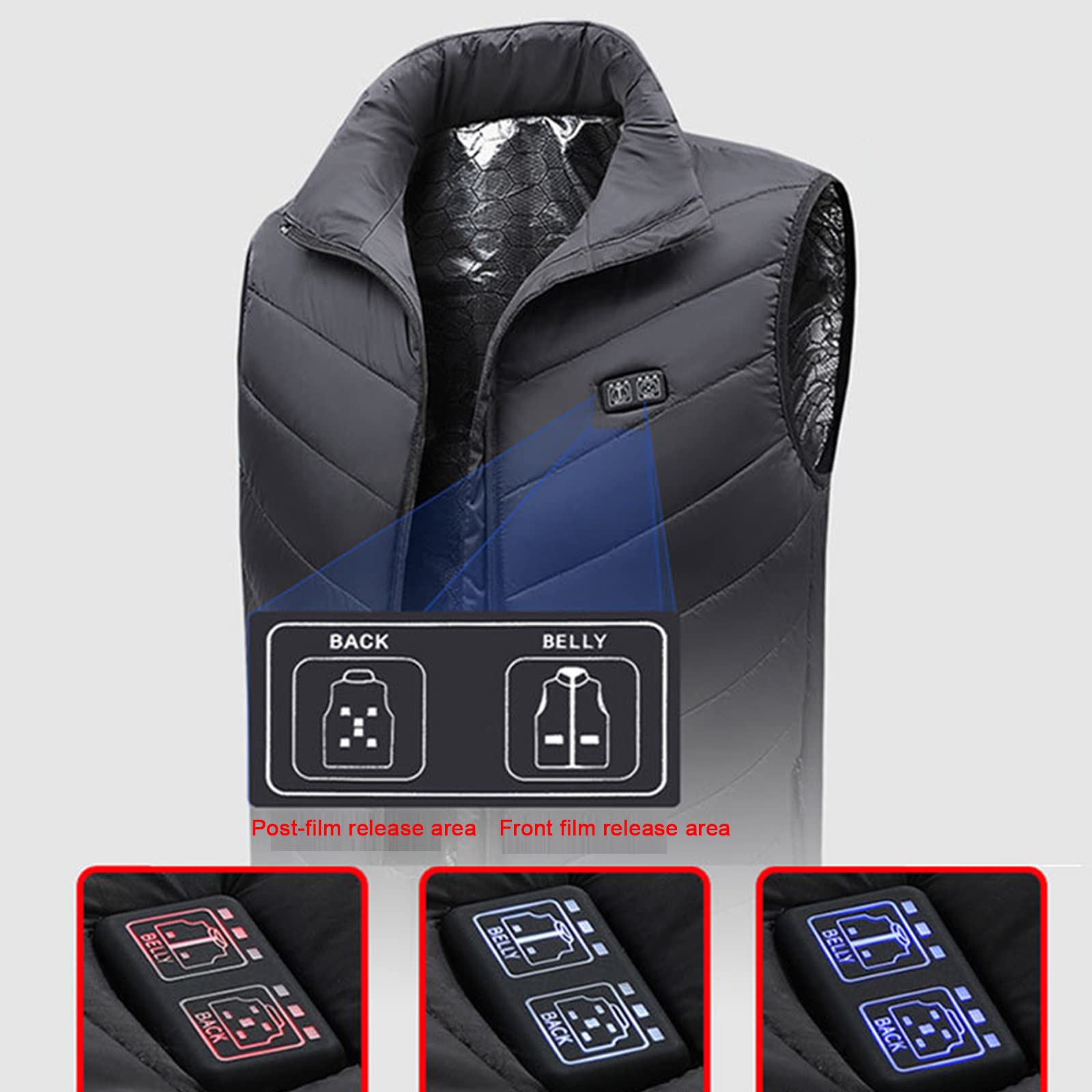 Réchauffer le haut du corps : Le gilet chauffant dispose de 9 zones chauffantes. Il est doux et respirant pour réchauffer davantage le corps, la taille, le ventre et le cou lorsqu'il fait froid. Ce gilet est parfait pour les activités de plein air comme le camping, la chasse, la pêche, le ski, la randonnée ou s'asseoir dans les tribunes pendant la saison froide. Peut être utilisé comme vêtement d'extérieur ou comme sous-vêtement chaud et confortable.