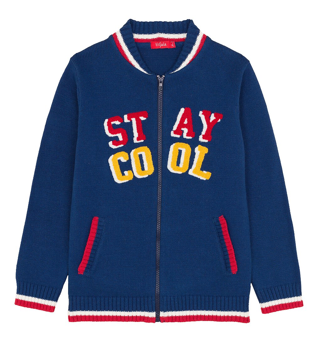 Gilet en maille marine, en coton biologique, avec patch en bouclettes "stay cool"