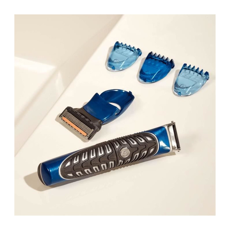 Le styler pour homme Gillette a en a tond uniformément, rase de pres, sculpte les bords avec précision et est idéal pour l'entretien du corps. Doté de la technologie Braun, il est étanche et utilisable sous la douche. Elle vous permet de créer n'importe quel style de barbe et d'entretenir votre corps.