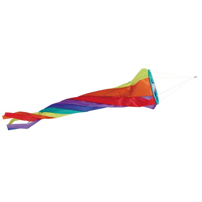 Turbine décorative au couleurs de l'arc-en-ciel. Peut s'attacher au bout d'un mât, sur une ligne de cerf-volant monofils, ou sur un point en hauteur. 14 x 60 cm