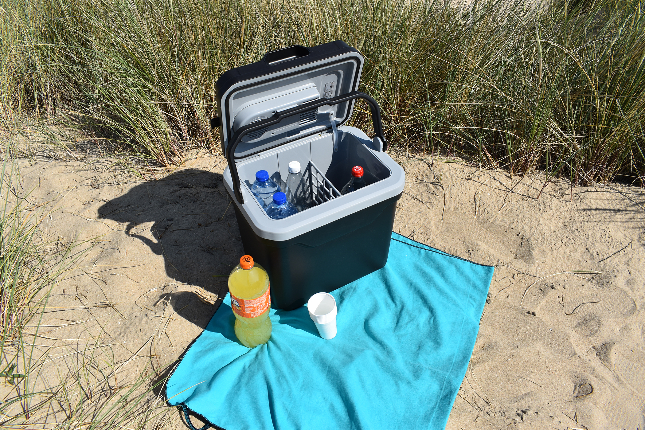 Glacière électrique 24L chaud/froid biénergie. 2 câbles inclus: 12V allume-cigare et 220V domestique! Réfrigération jusqu'à 15°C en dessous de la température ambiante. Maintient la chaleur jusqu'à 55°. Classe énergétique E. Dimension: 40 x 46 x 30 cm. Poids à vide 4,5Kg.