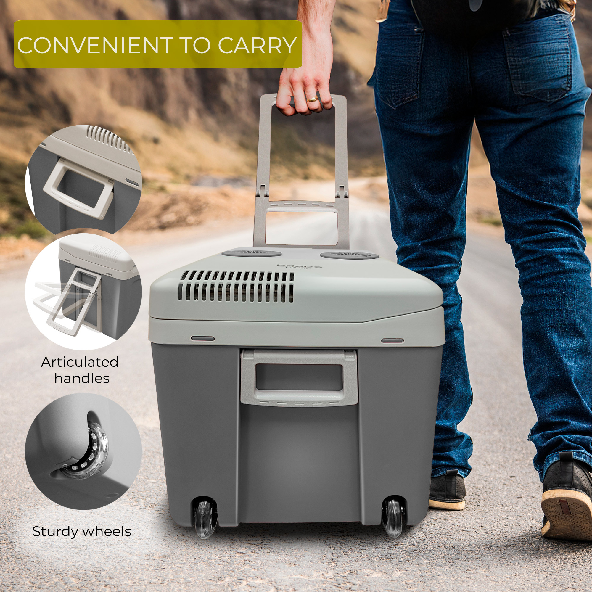 • Transport Facile : Préparez-vous à emporter vos aventures et le confort de la maison à n'importe quelle destination, avec la confiance d'avoir toujours à portée de main vos aliments et boissons au point exact de fraîcheur ou de chaleur que vous désirez. D'une taille compacte de 56,1 x 39,1 x 41,6 cm, il constitue une solution pratique pour les petits espaces et est facile à transporter grâce à ses roues et à sa solide poignée pliante.