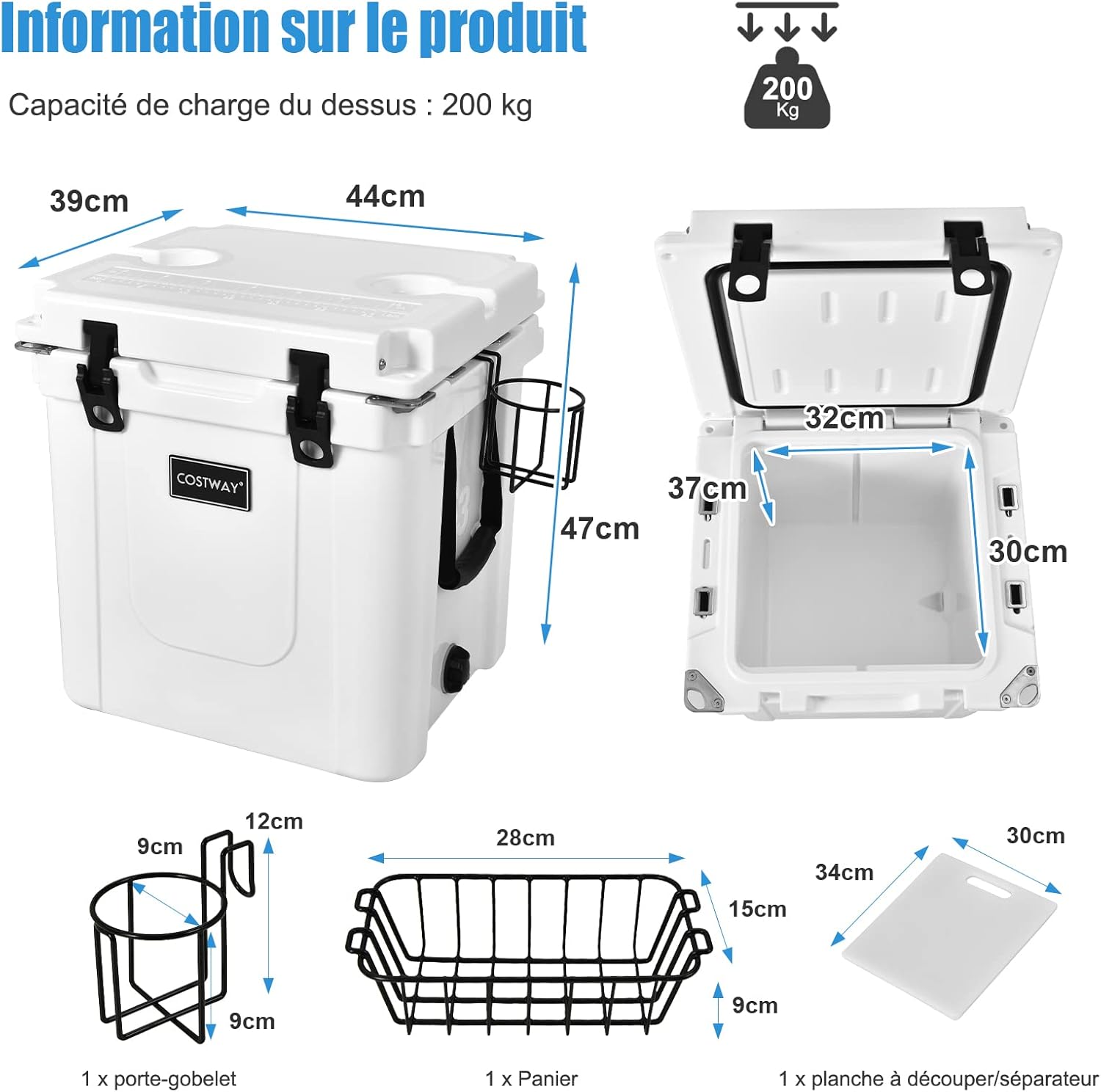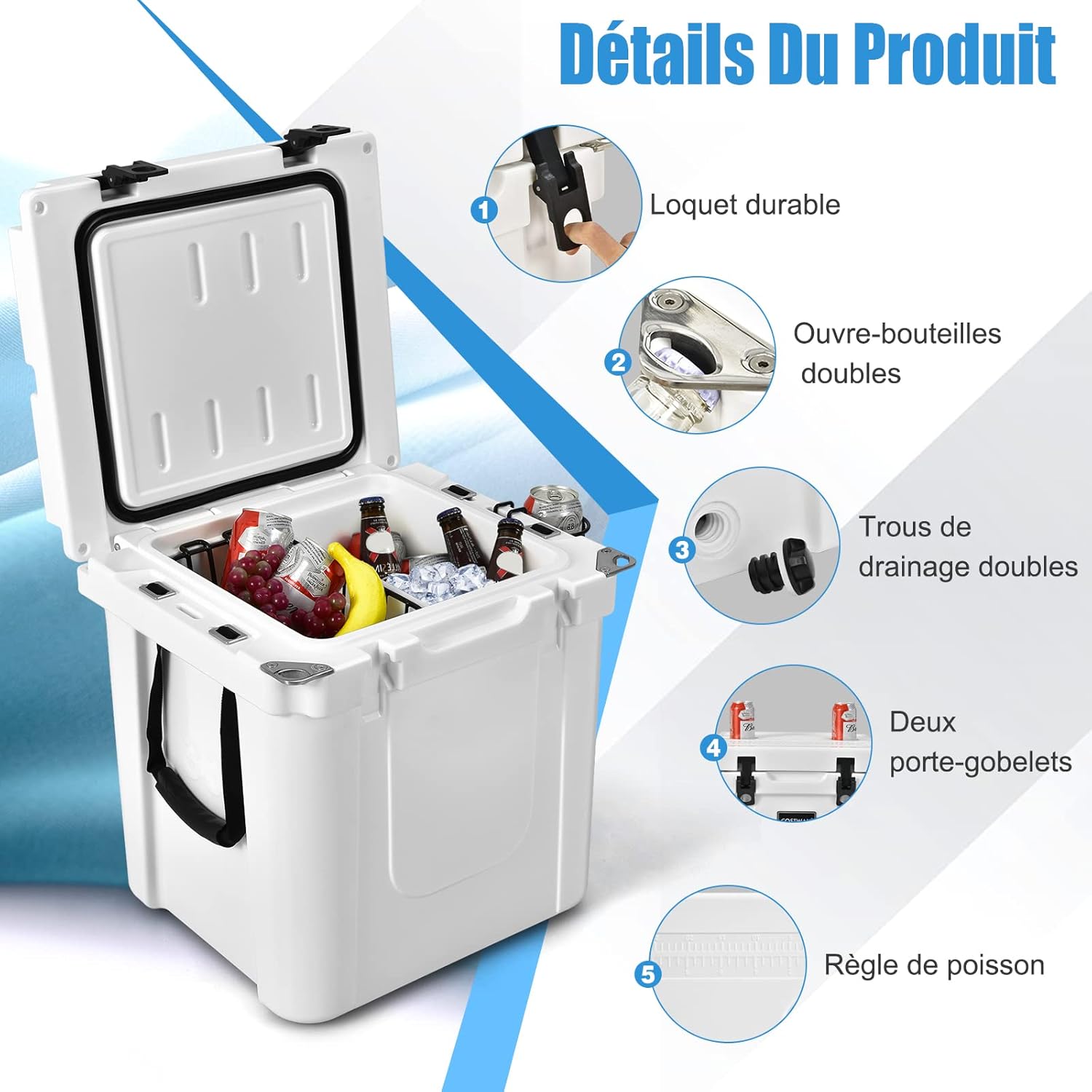 | Libellé | Glacière portable 33l pour conserver chaleur/froid avec 2 poignées et patins antidérapants, blanc |