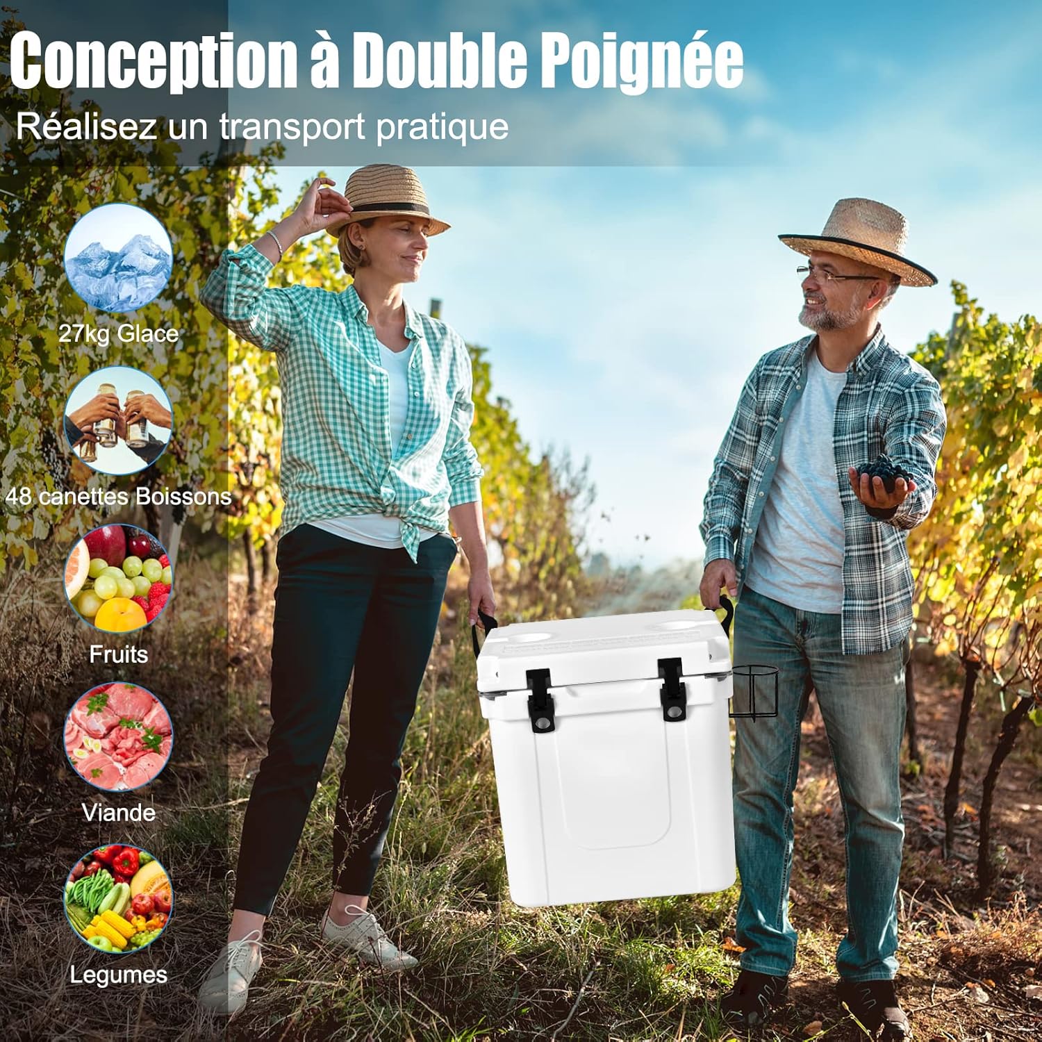 Poignées pratiques vous aident à transporter la glacière