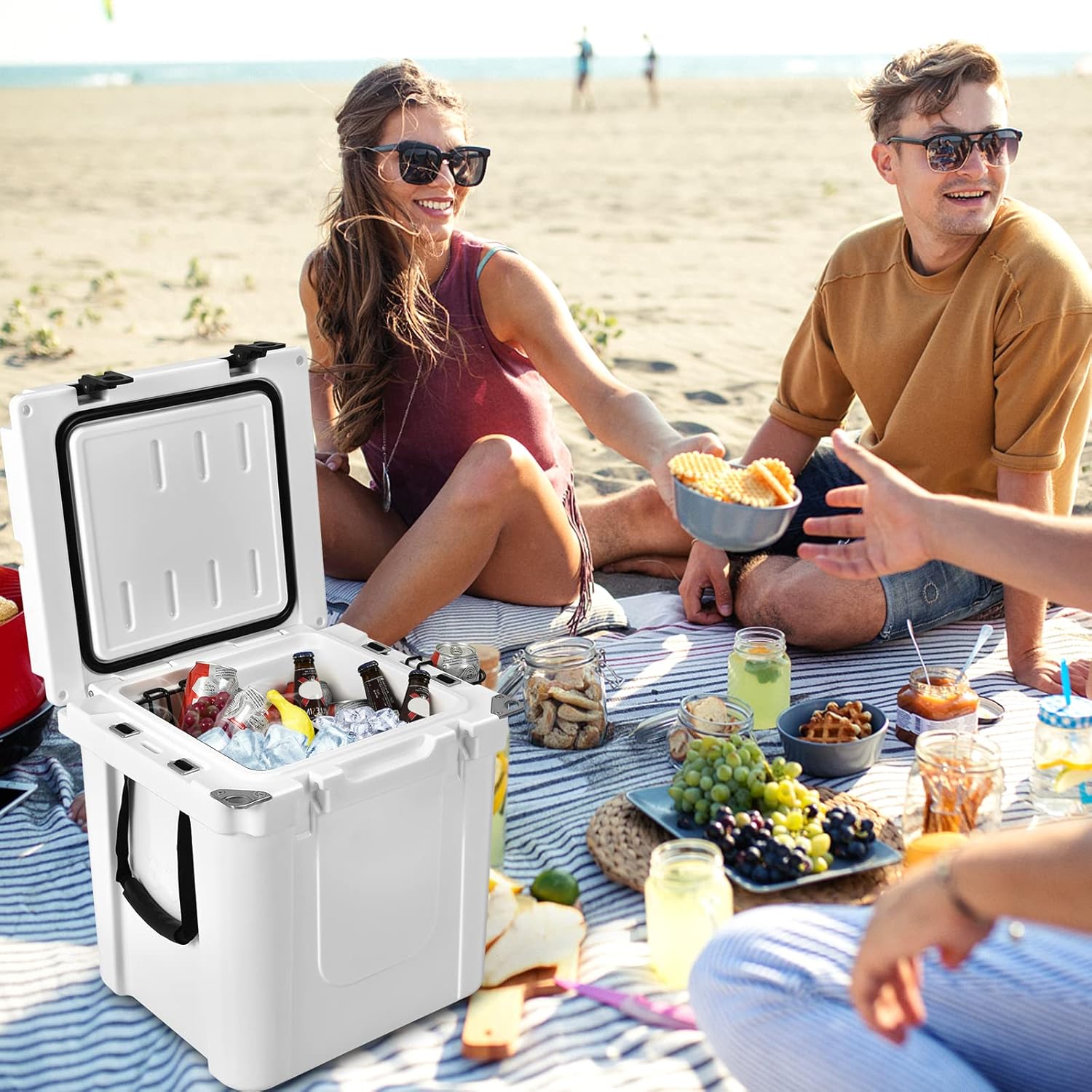 Glacière portable 33l pour conserver chaleur/froid avec 2 poignées et patins antidérapants, blanc