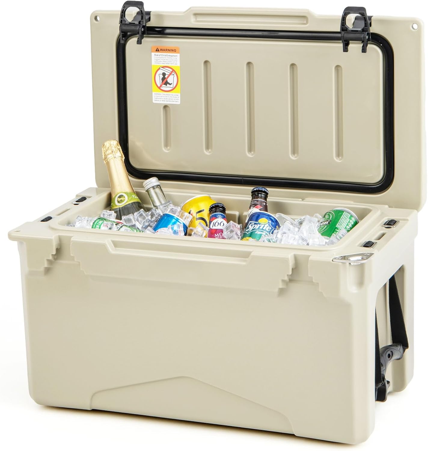 - # Construction Fiable # La glacière rigide, fabriquée en LLDPE et polyuréthane haute résistance, est durable pour résister à diverses conditions météorologiques et solide pour supporter des poids allant jusqu'à 100 kg. De plus, les patins antidérapants en caoutchouc contribuent à sa stabilité.
