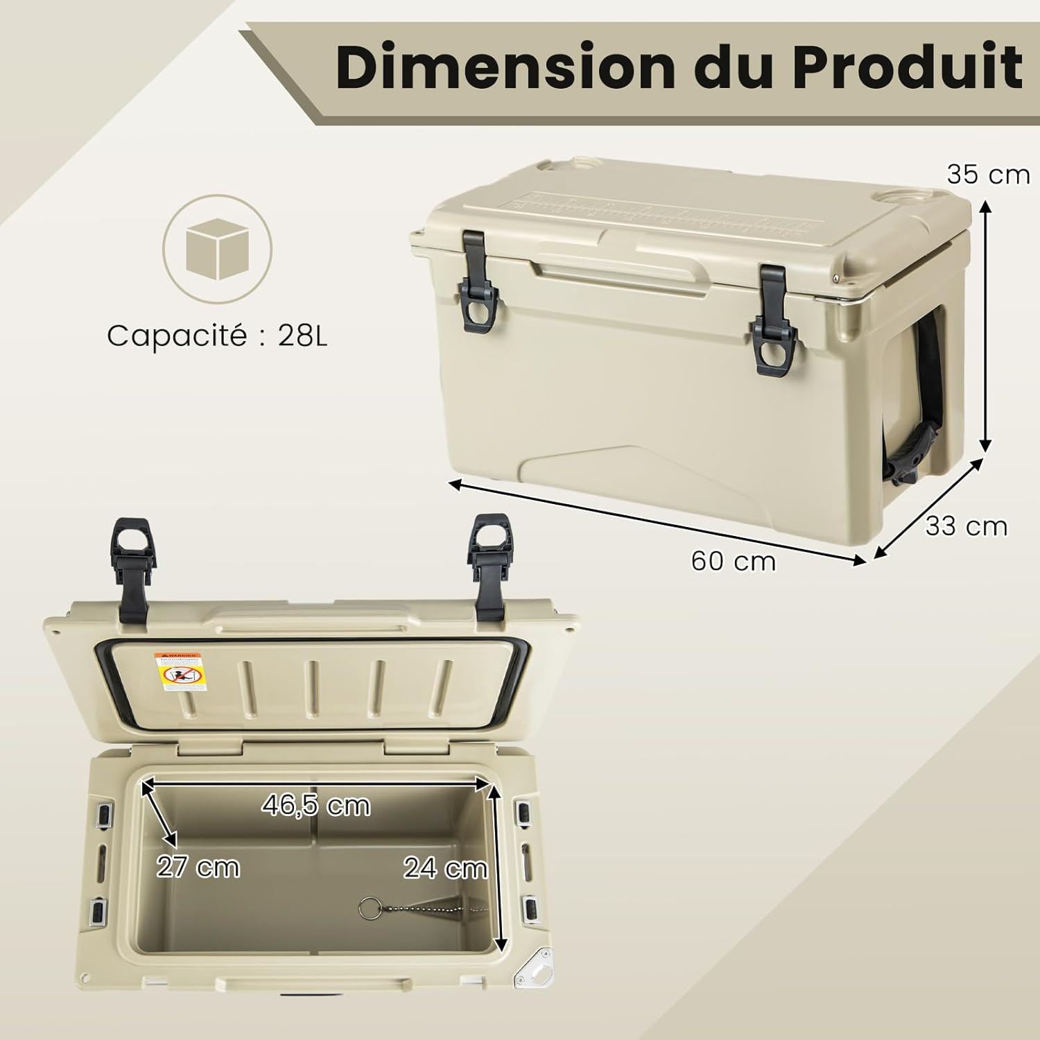 | Libellé | Glacière rigide 28 l, glacière isolée portative avec poignées, décapsuleur, règle à poissons |