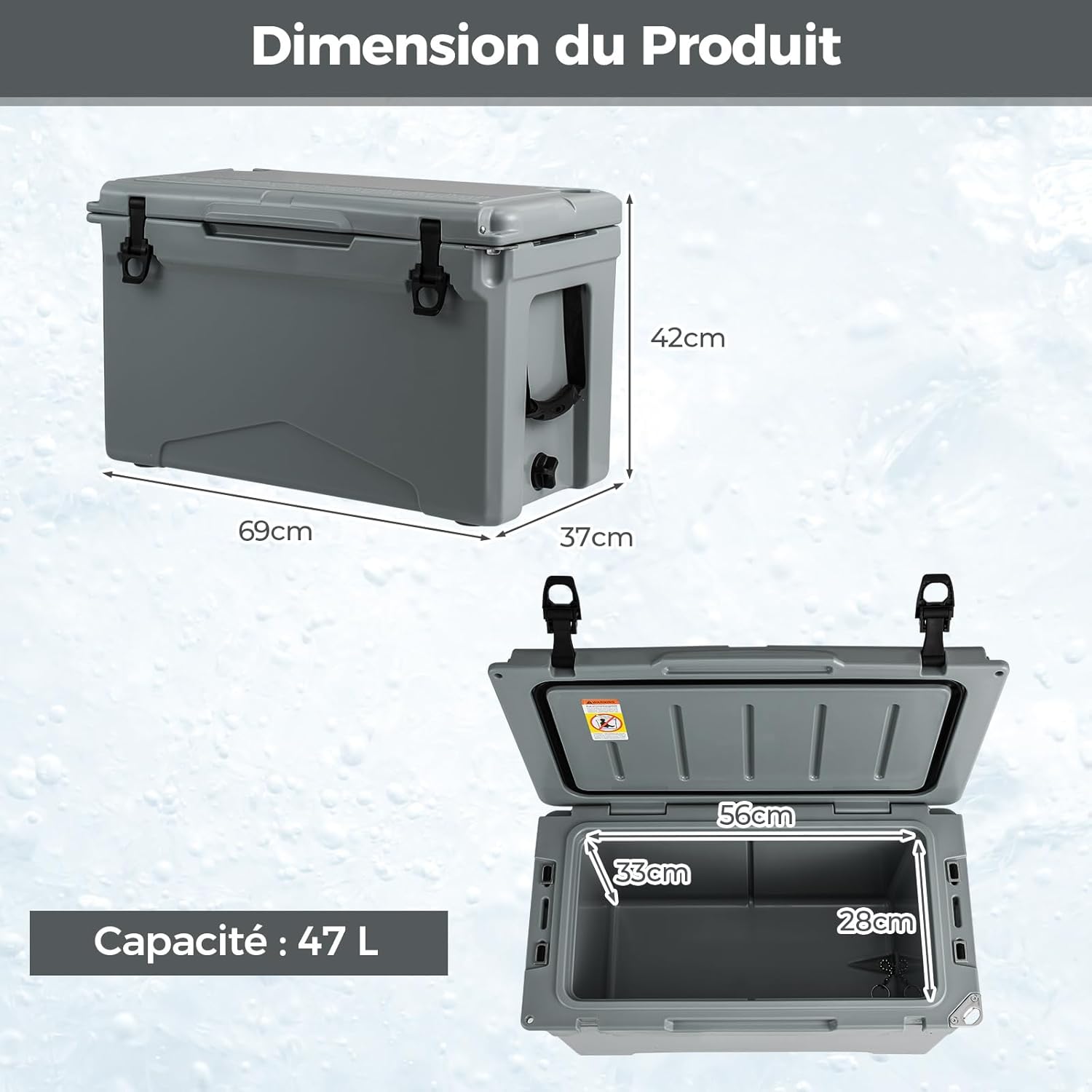 | Libellé | Glacière rigide extérieure 47 l, glacière portative isolée rotomoulée, avec porte-gobelets |