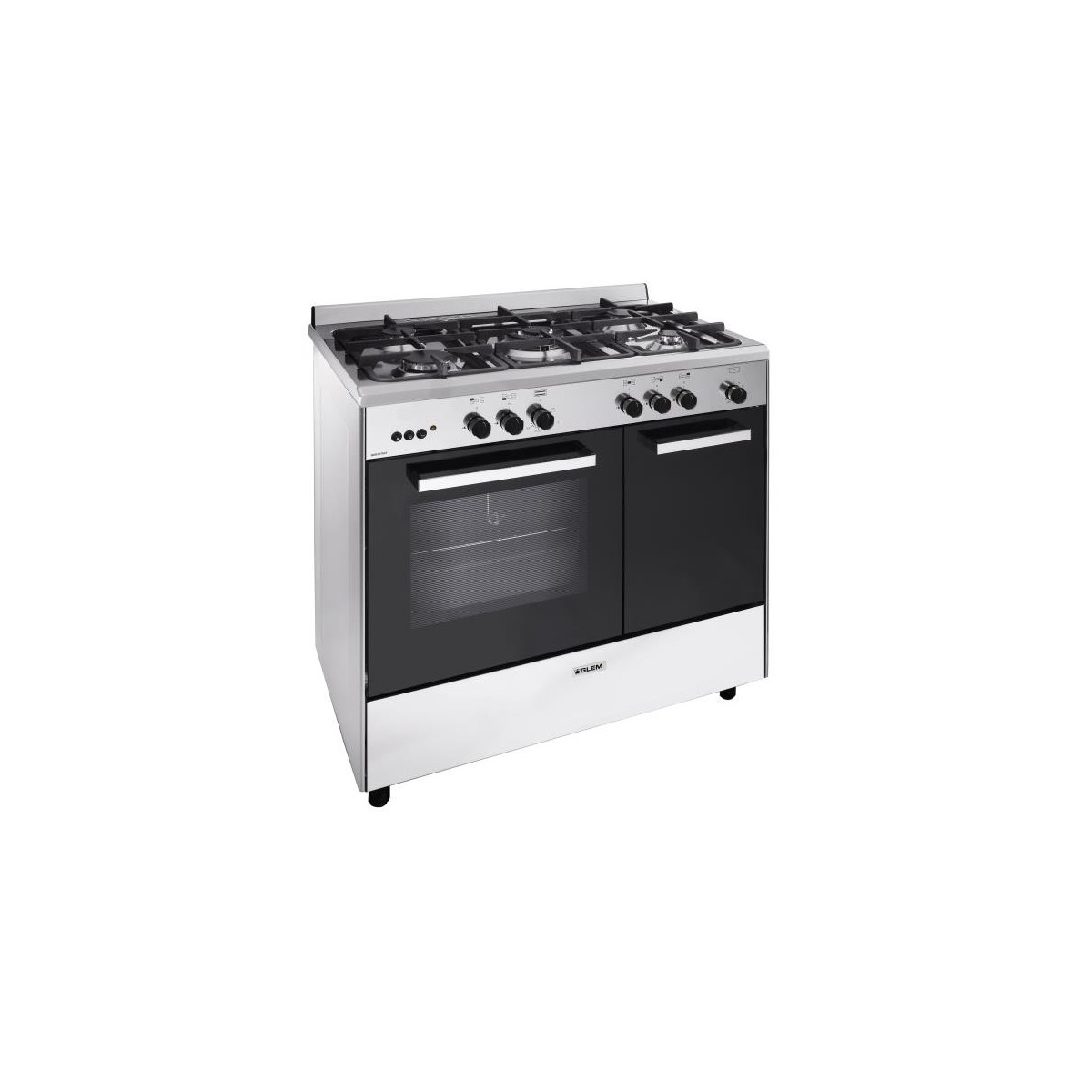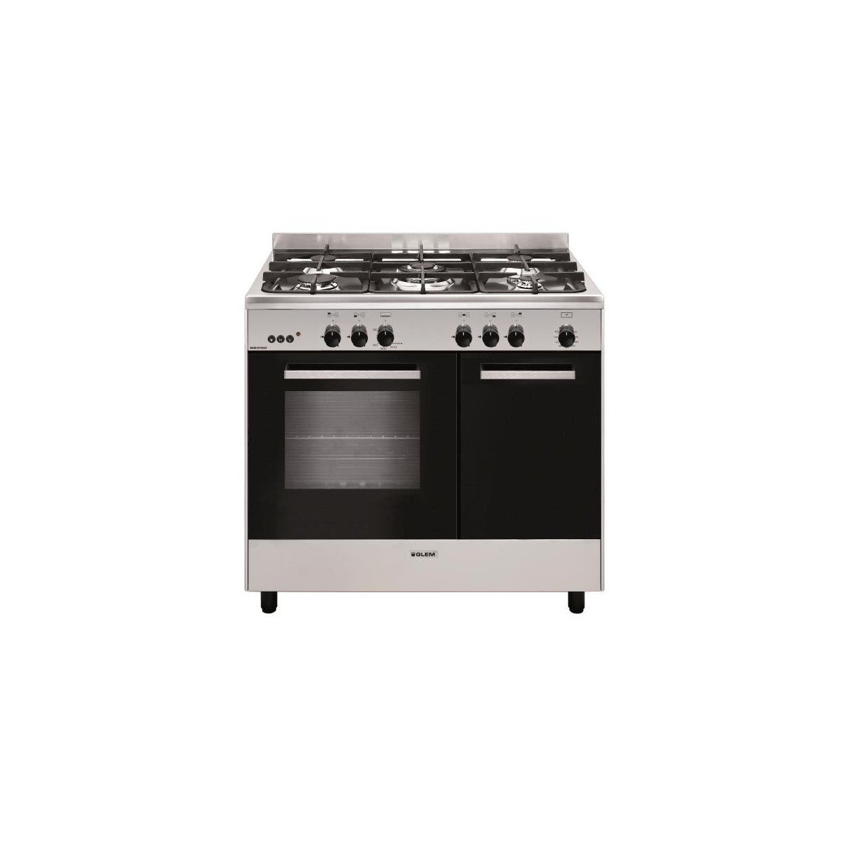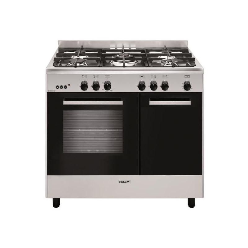 GLEM Cuisinière piano de cuisson 5 foyers Brûleurs gaz inox 90x60cm Four catalyse Gazinière 66L