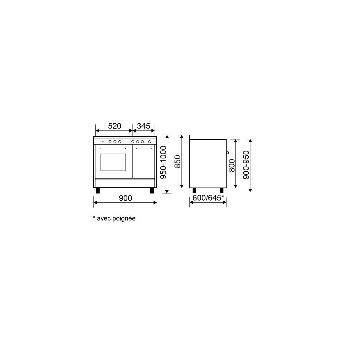 | Libellé | GLEM Cuisinière piano de cuisson 5 foyers Brûleurs gaz inox 90x60cm Four catalyse Gazinière 66L |
