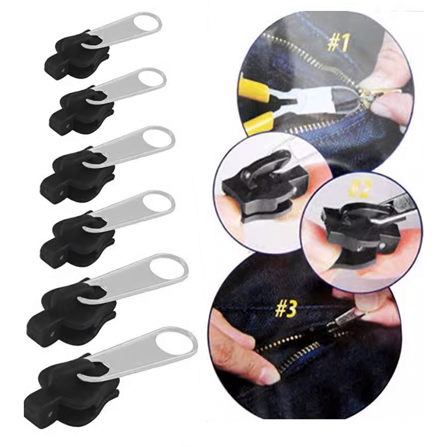 Trois tailles différentes : L'ensemble contient 12 glissières de fermeture éclair faciles à changer en 3 tailles différentes. Fonctionne sur les accidents de fermeture éclair les plus courants, comme les fermetures éclair fendues et les languettes cassées. Peut être démarré au milieu d'une fermeture éclair et peut être tiré vers l'avant et vers l'arrière.