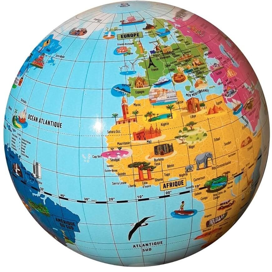 Un magnifique globe gonflable de 42cm pour découvrir les continents, les pays et leurs merveilles respectives.