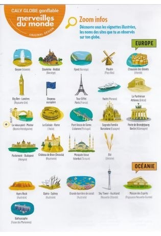Libellé Globe gonflable 42cm Merveilles du Monde