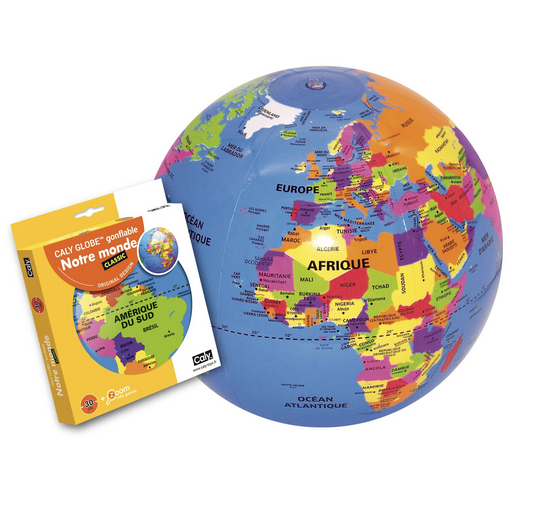 Une vraie mappemonde géopolitique gonflable, originale et unique avec ses belles couleurs lisibles pour les enfants.