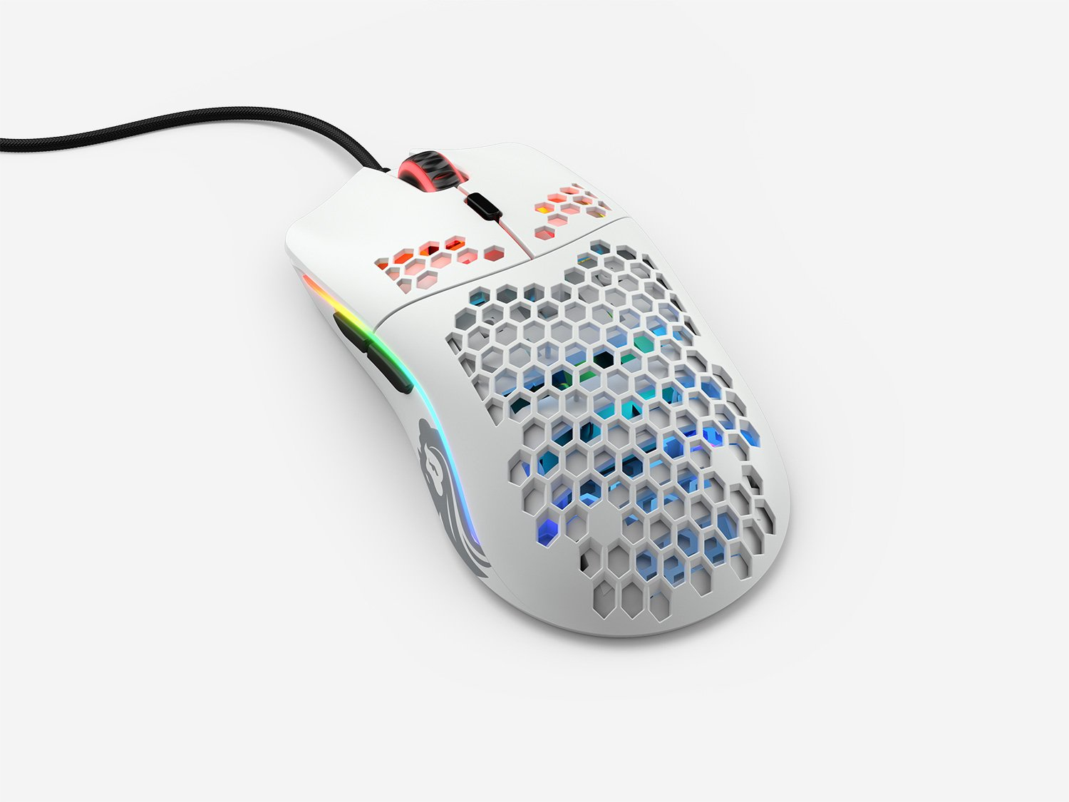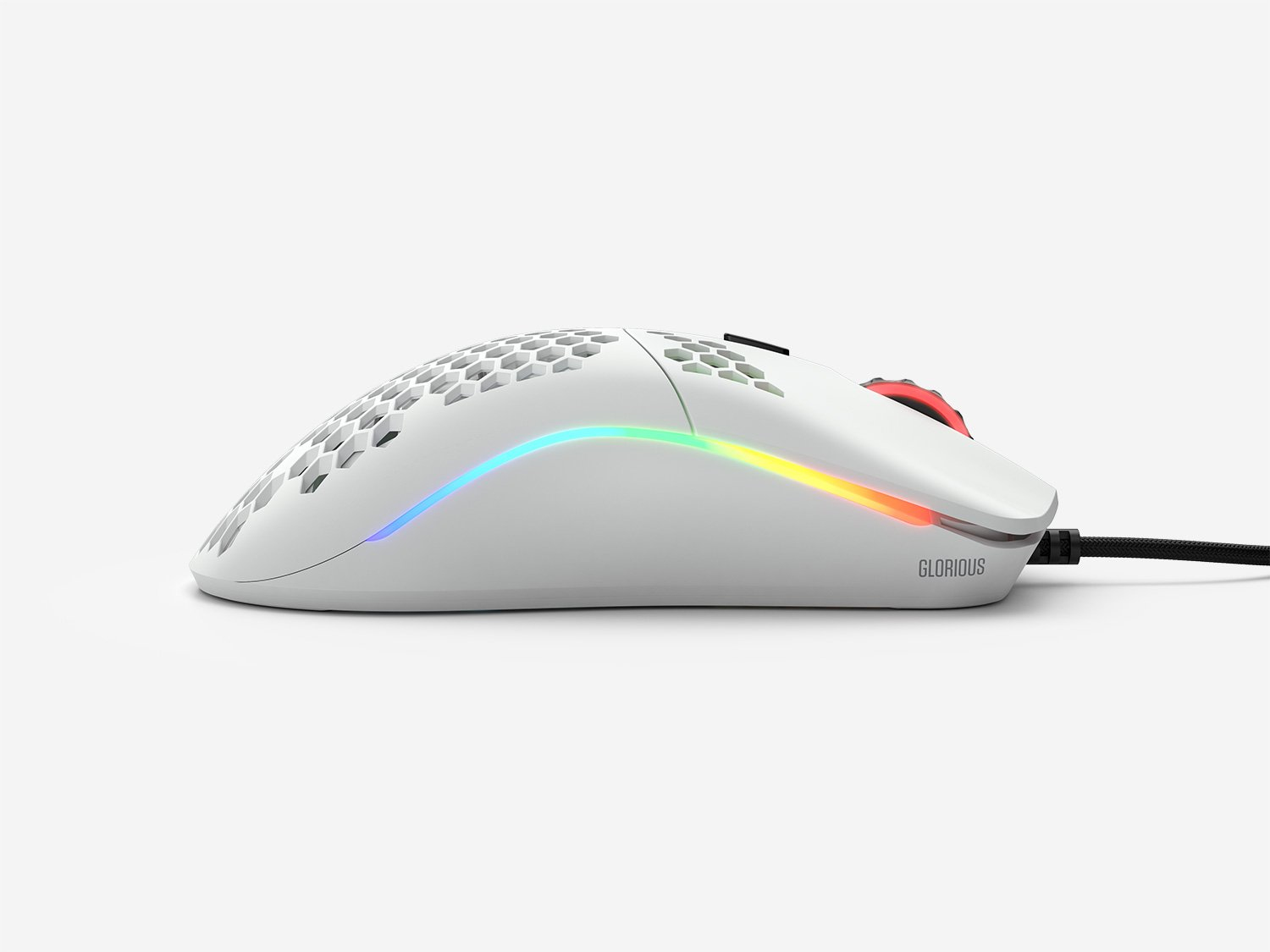 Glorious PC Gaming Race Model O-. Format: Droitier. Technologie de détecteur de mouvement: Optique, Interface de l'appareil: USB Type-A, Résolution en mouvement: 3200 DPI, Type de boutons: Boutons poussoirs, Quantité de boutons programmables: 6, Type Scroll: Roue. Couleur de l'éclairage: Multicolore. Source d'alimentation: Cable. Couleur du produit: Blanc