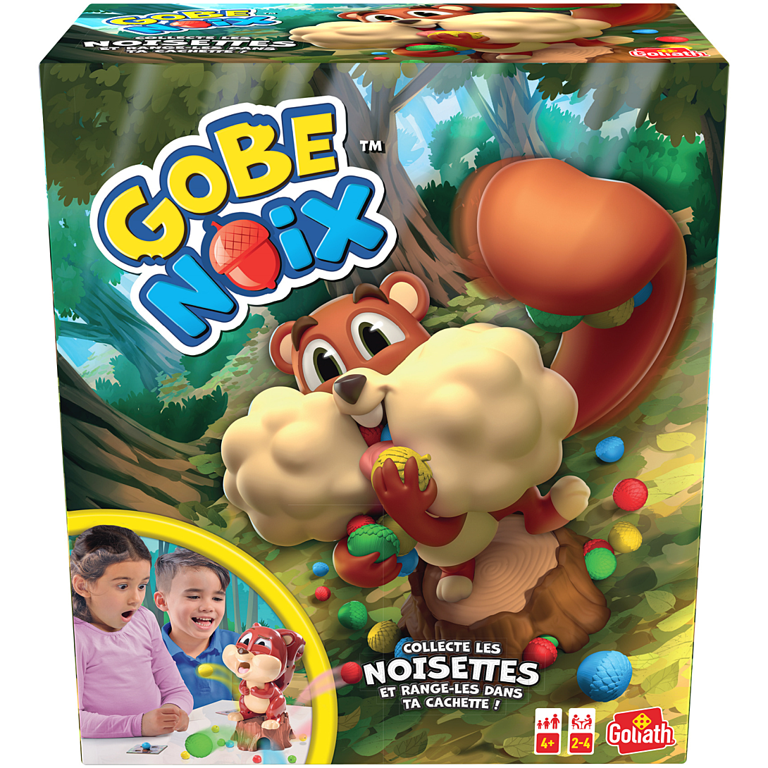 | La boîte contient | 1 Gobe Noix l'écureuil, 24 glands, 1 dé, 1 tronc d'arbre, 4 cachettes en carton, 1 réserve à glands, 1 planche d'autocollants, la règle du jeu. |