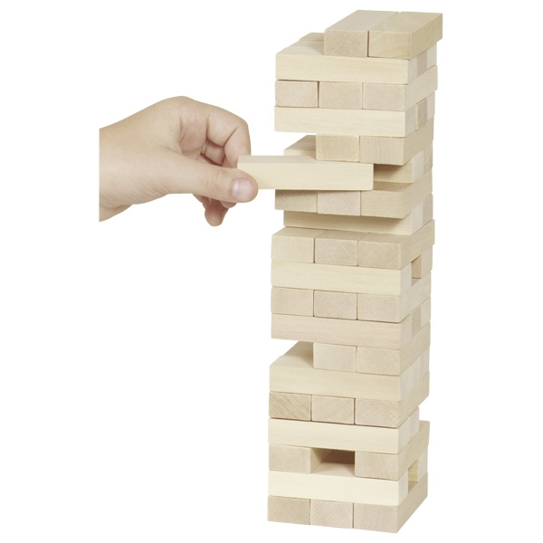 Pour ce jeu il faut de la concentration, de l'habileté et surtout ne pas trembler. Chacun leur tour les joueurs retirent une pièce de la tour pour la poser au sommet. Celui qui fera s'effondrer l'édifice a perdu.