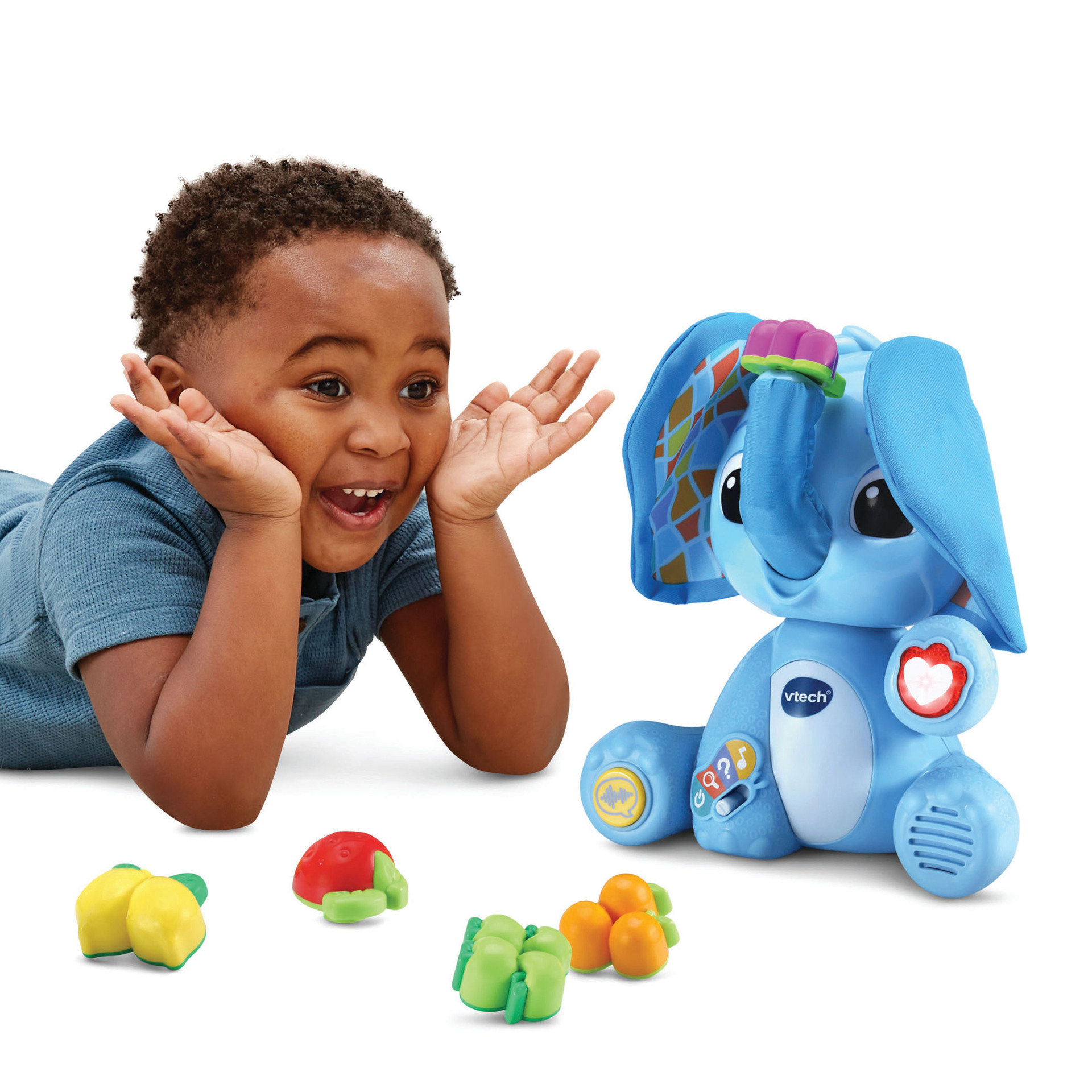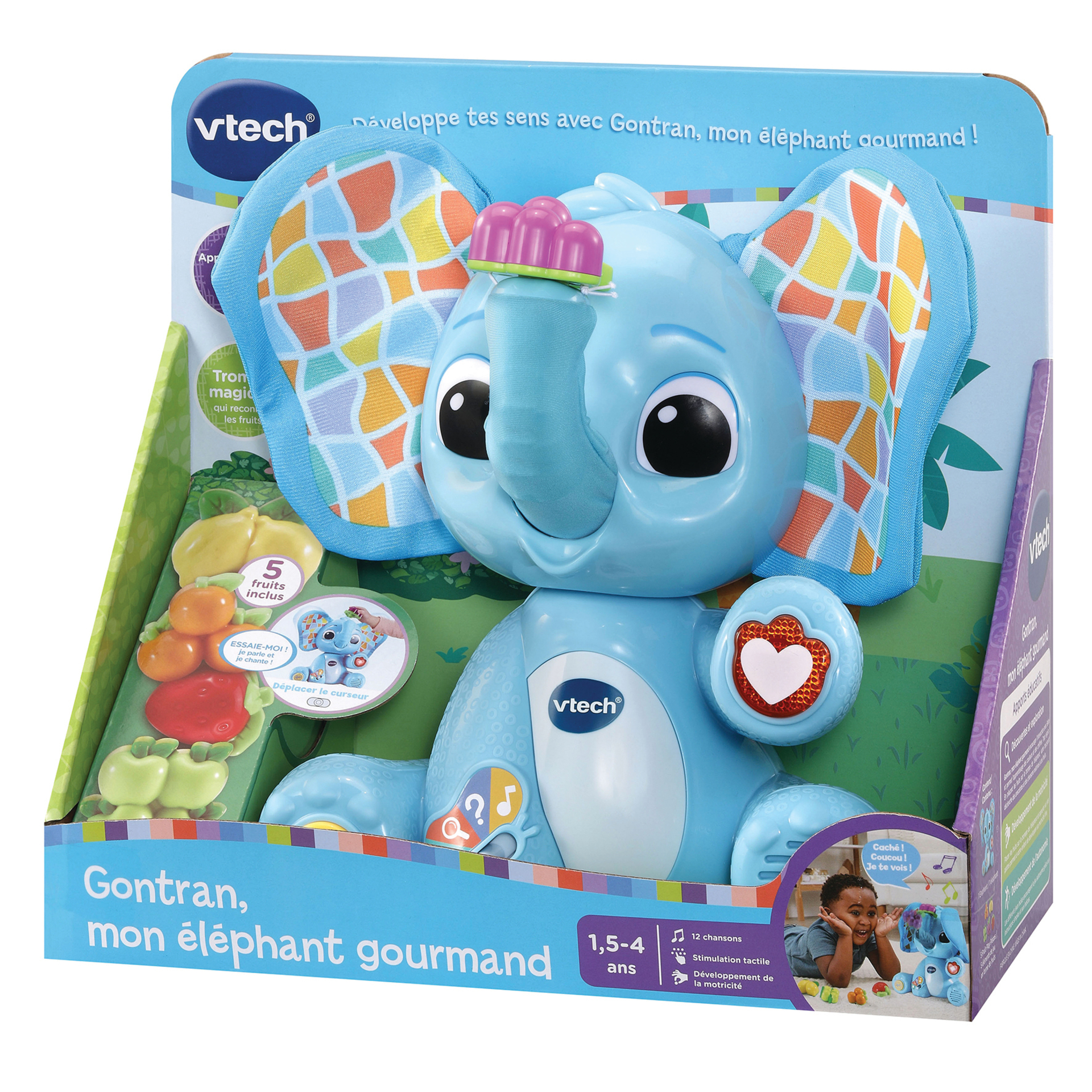 Grâce à sa trompe magique animée, léléphant peut reconnaître les 5 fruits inclus et permet à lenfant dapprendre les chiffres, les couleurs, les fruits, leurs goûts et leurs textures.