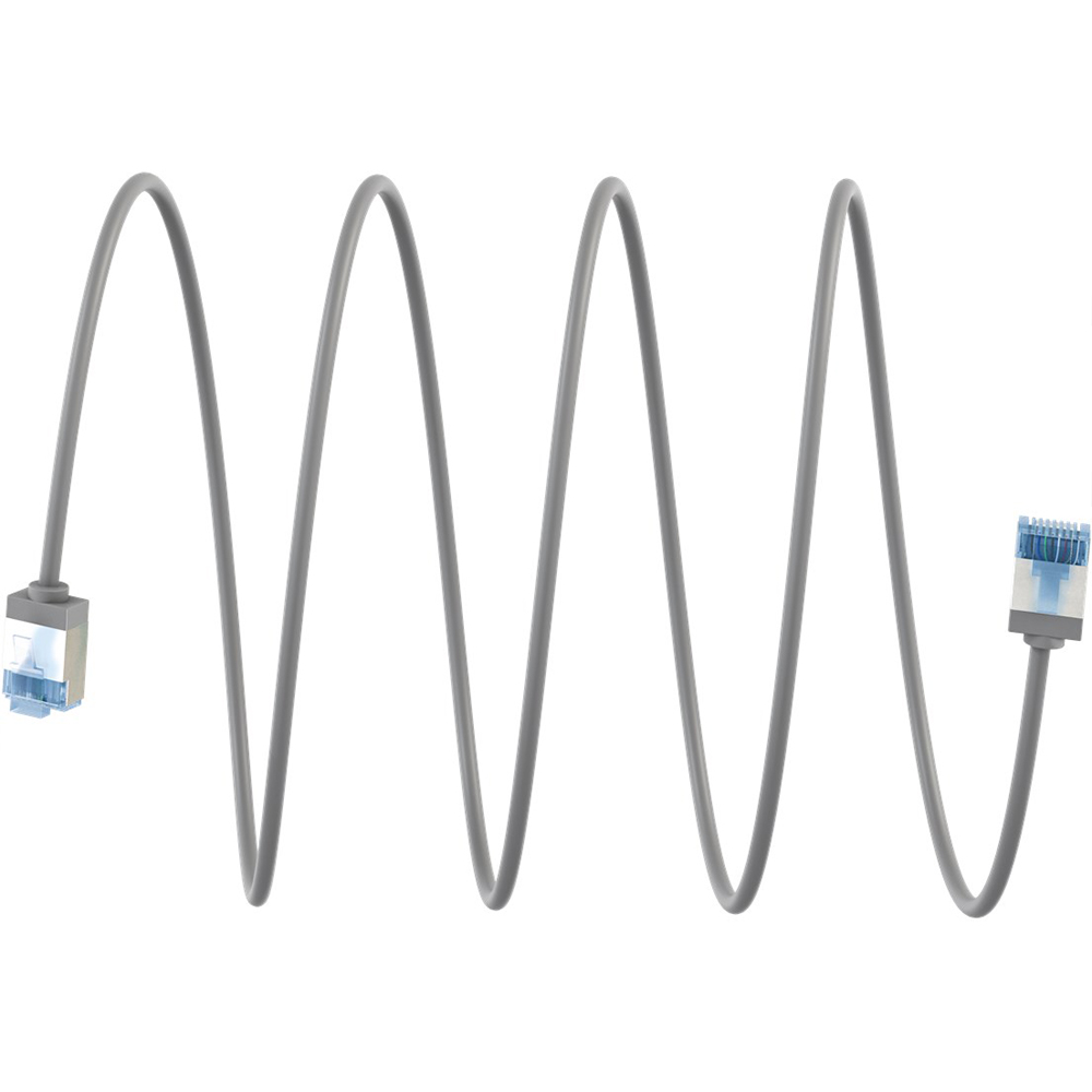 Câble Ethernet Cat 6a U/FTP LSOH slim / ultra flexible - gris 10mLes câbles réseaux superslim blindés avec connecteurs extracourts réduisent drastiquement le volume de matériel dans les coffrets / baies informatique,les panneaux de brassage ou derrière un élément proche du mur - pour une circulation de l'air nettement améliorée et une accumulation de chaleur moins importante qu'avec un câblage traditionnel. De plus, la gaine en TPE souple et les conducteurs en cuivre minces assurent une flexibilité et une efficacité matérielle particulières qui font de cette génération de câbles le partenaire réseau parfait. Flexible à coup sûr : Blindé et à paires torsadées et avec une gaine en TPE sans halogène et à faible dégagement de fumée pour un rayon de courbure particulièrement petit et une grande flexibilité Grâce à l'AWG 32 et à un diamètre extérieur de 3,8 mm, le câble est ultra-mince, mais aussi performant qu'un câble CAT standard Le câble réseau haute vitesse est parfait pour les réseaux Ethernet 10 Gigabit, rétrocompatible avec les anciennes générations en 100 Mbps ou 1000 Mbps (Gigabit). Le câble RJ45 convient pour Power over Ethernet (PoE, PoE+, UPoE, 4PPoE) et HDBaseT La protection anti-pliage efficace et compacte est forte contre la rupture de câble et assure une longue durée de vie du câble Ethernet