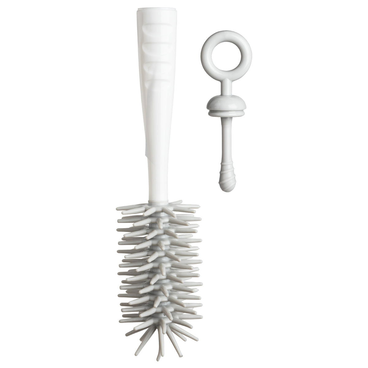 Grâce à sa petit brosse cachée dans le manche, nettoyer la tétine du biberon devient un jeu d'enfant !