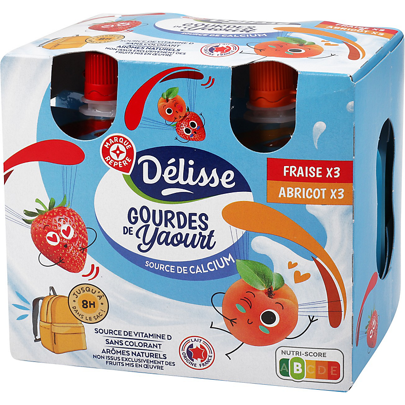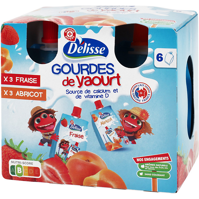 Gourde de yaourt abricot et fraise - 6 x 90 g - DELISSE