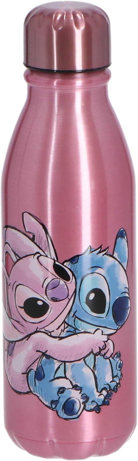 Bouteille en aluminium à l'effigie de Stitch et Angel, les célèbres personnages du film d'animation Disney Lilo et Stitch. Elle a une capacité de 600 ml et un bouchon à visser. Elle est idéale pour transporter votre boisson préférée partout avec vous, que ce soit à l'école, au travail ou en voyage. Elle est légère, résistante et facile à nettoyer. Elle affiche un design original et coloré qui plaira aux fans de Disney. C'est un produit sous licence officielle Disney qui fera un cadeau parfait pour les petits et les grands.