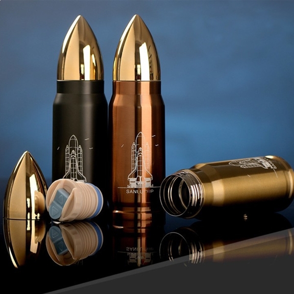 En quête d'un accessoire vous permettant de transporter et de garder votre boisson au chaud pendant un long voyage ? Optez pour cette gourde qui reprend la forme d'une balle d'arme à feu. Il peut contenir jusqu'à 350 ml de boisson.* Dimension : 23,5 x 6,8 x 6,8 cm * Capacité : 350 ml * Matière : plastique et acier inoxydable Fonctions : bouteille isotherme Contenu : 1 Gourde balle