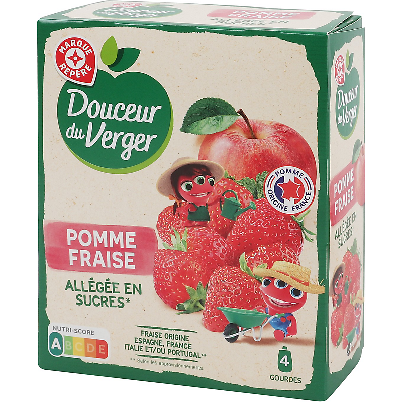 Gourdes allégées en sucres pomme fraise - 4 x 90 g - DOUCEUR DU VERGER