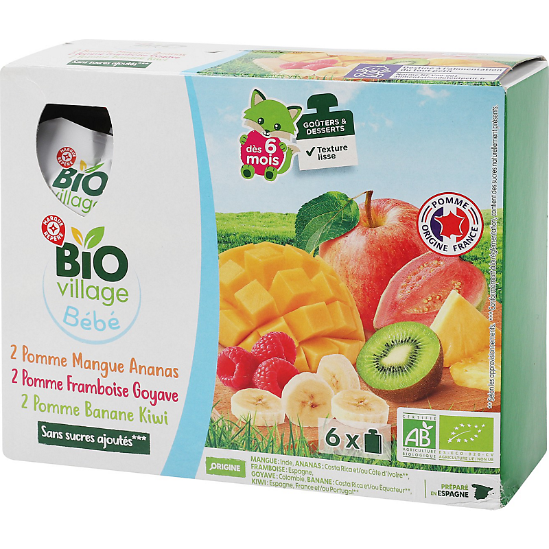 Gourdes sans sucres ajoutés multi variétés fruits exotiques dès 6 mois bio - 6 x 90 g - BIO VILLAGE