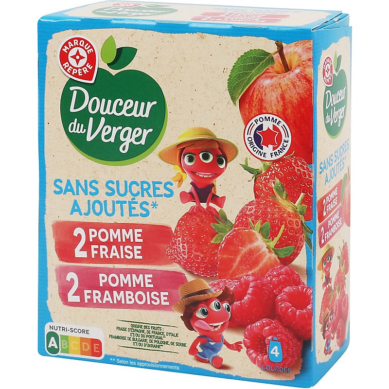 Gourdes sans sucres ajoutés pomme fraise et pomme framboise - 4 x 90 g - DOUCEUR DU VERGER