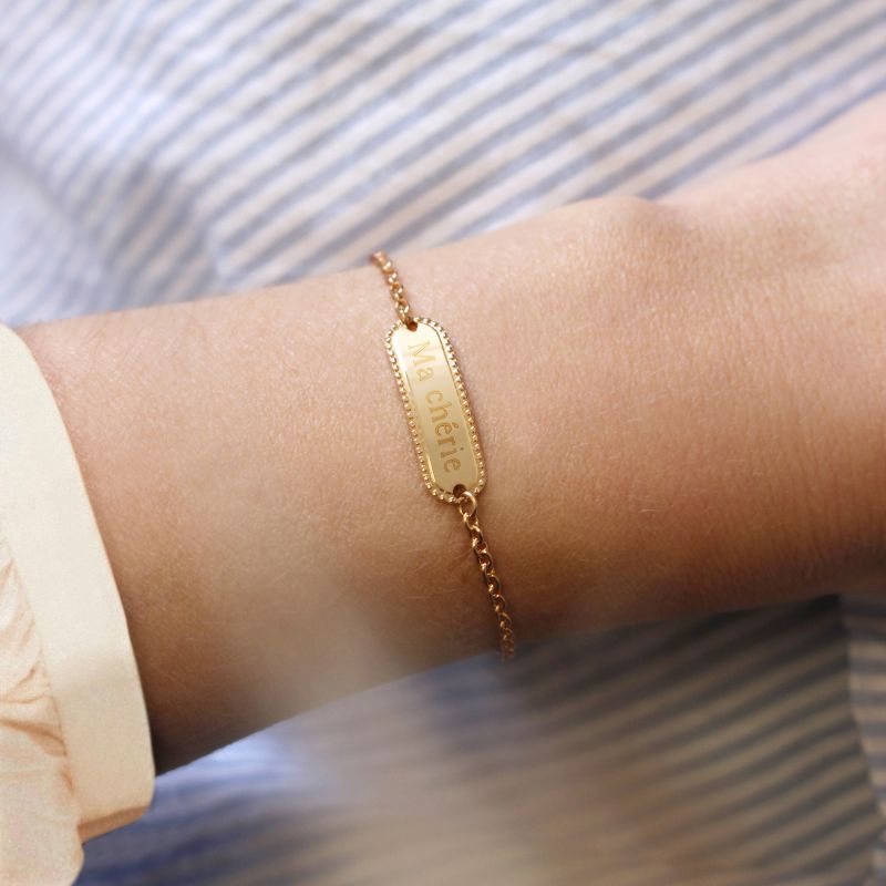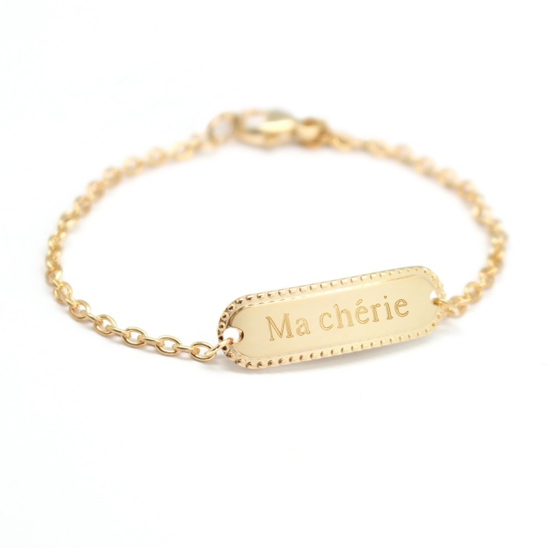 | Libellé | Gourmette perlée enfant - plaqué or - gravure MA CHÉRIE |