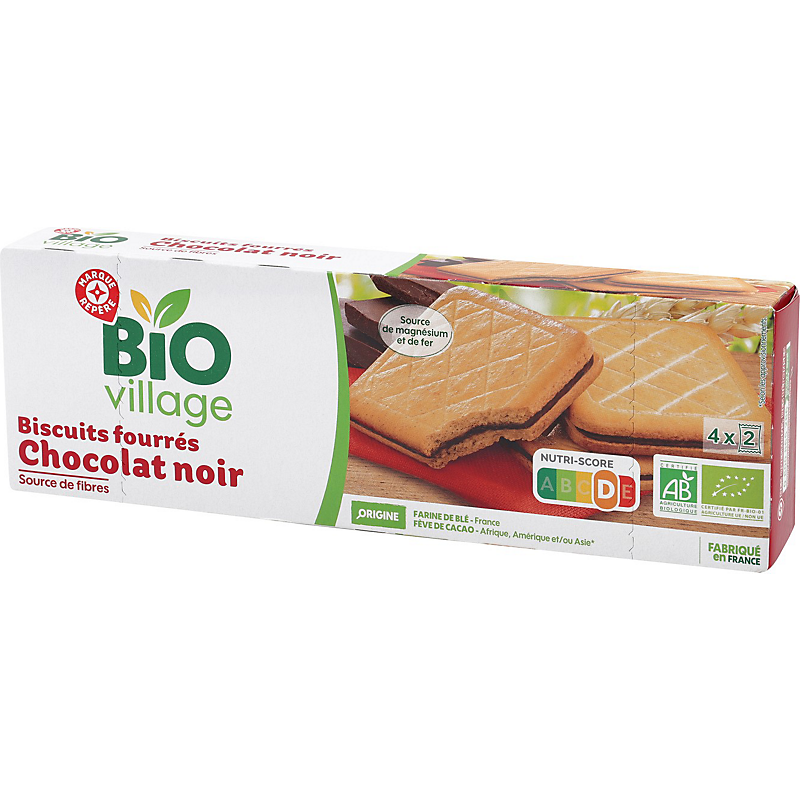 Biscuits avec 25 % de fourrage au chocolat noir - Produit issu de l'agriculture biologique BIO VILLAGE