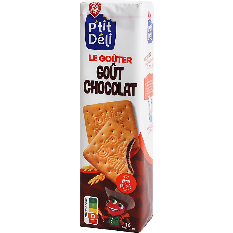 BISCUITS AVEC UN FOURRAGE (29 %) SAVEUR CHOCOLAT P'TIT DELI