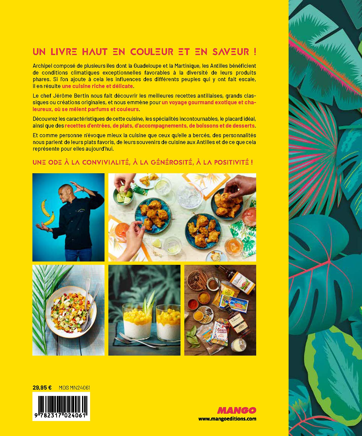 Un beau livre magnifique, graphique, contemporain et savoureux sur la cuisine antillaise. Jerôme Bertin nous fait découvrir 60 recettes parmi les meilleures et les plus authentiques de la Guadeloupe et de la Martinique et nous emmène dans un voyage gourmand unique.