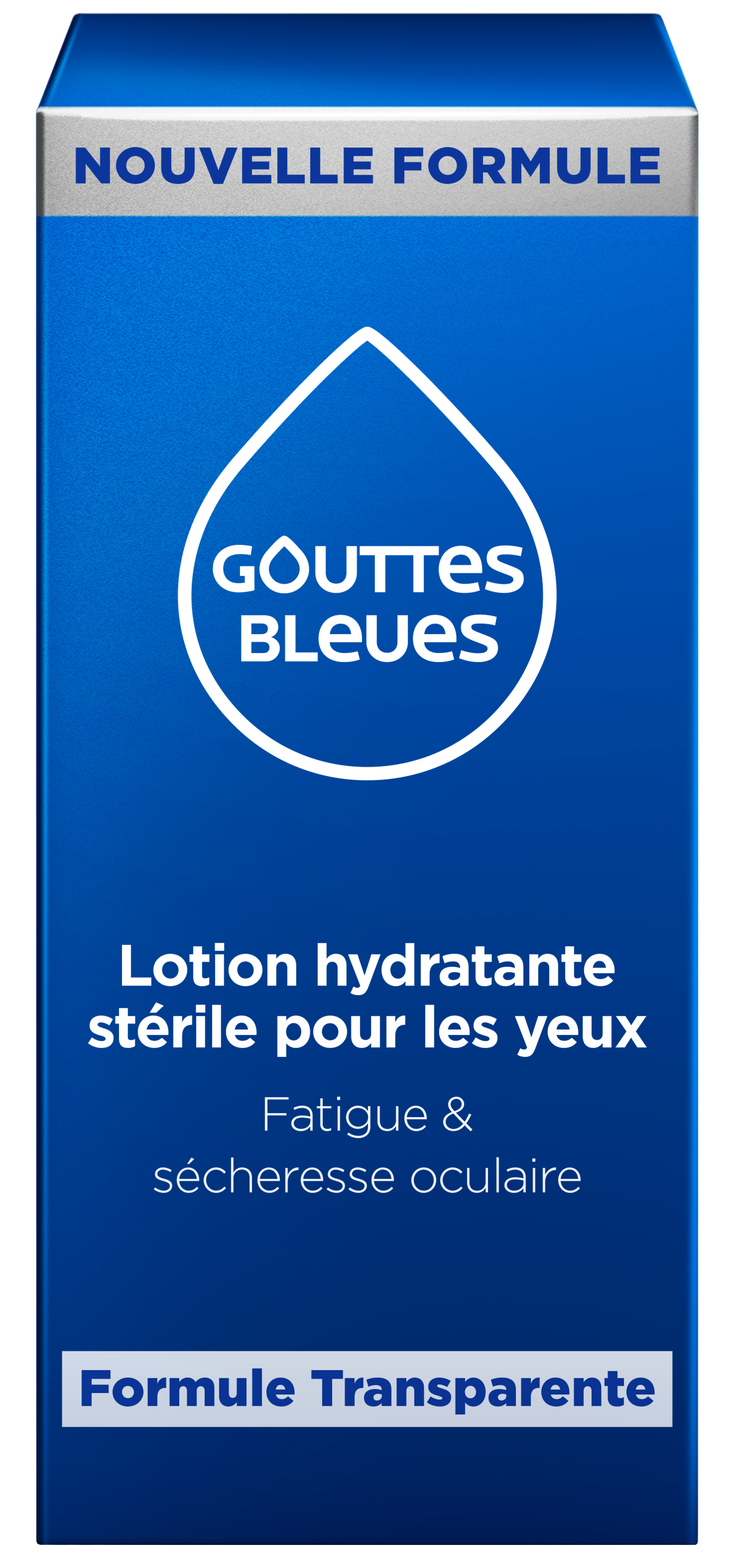 Gouttes Bleues s'utilise pour soulager les sensations de fatigue et de sécheresse oculaire (picotements, sensation de brûlure, tiraillements, yeux rougis) par une action mécanique qui hydrate la cornée.