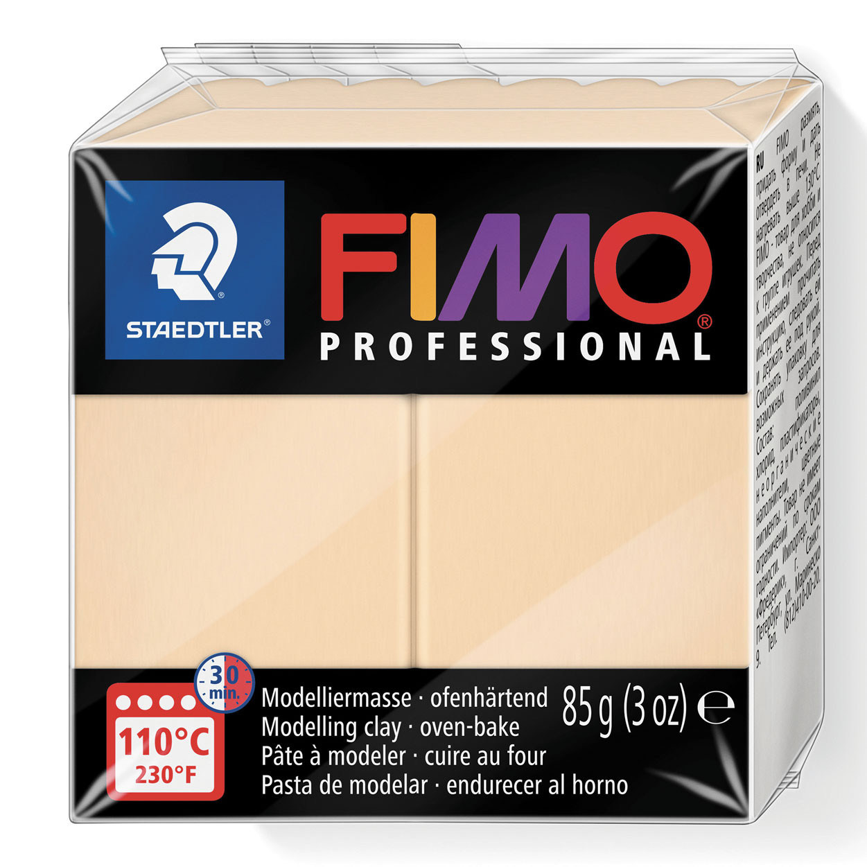 Le pain de Fimo Professional Champagne se présente en paquet de 85 gr. Cette pâte polymère de qualité professionnelle remplace désormais la célèbre Fimo Classic. Elle sera l'alliée idéale pour le modelage de figurines et de perles. N'hésitez pas à mélanger les couleurs entre elles pour obtenir la nuance exacte de pâte que vous souhaitez.