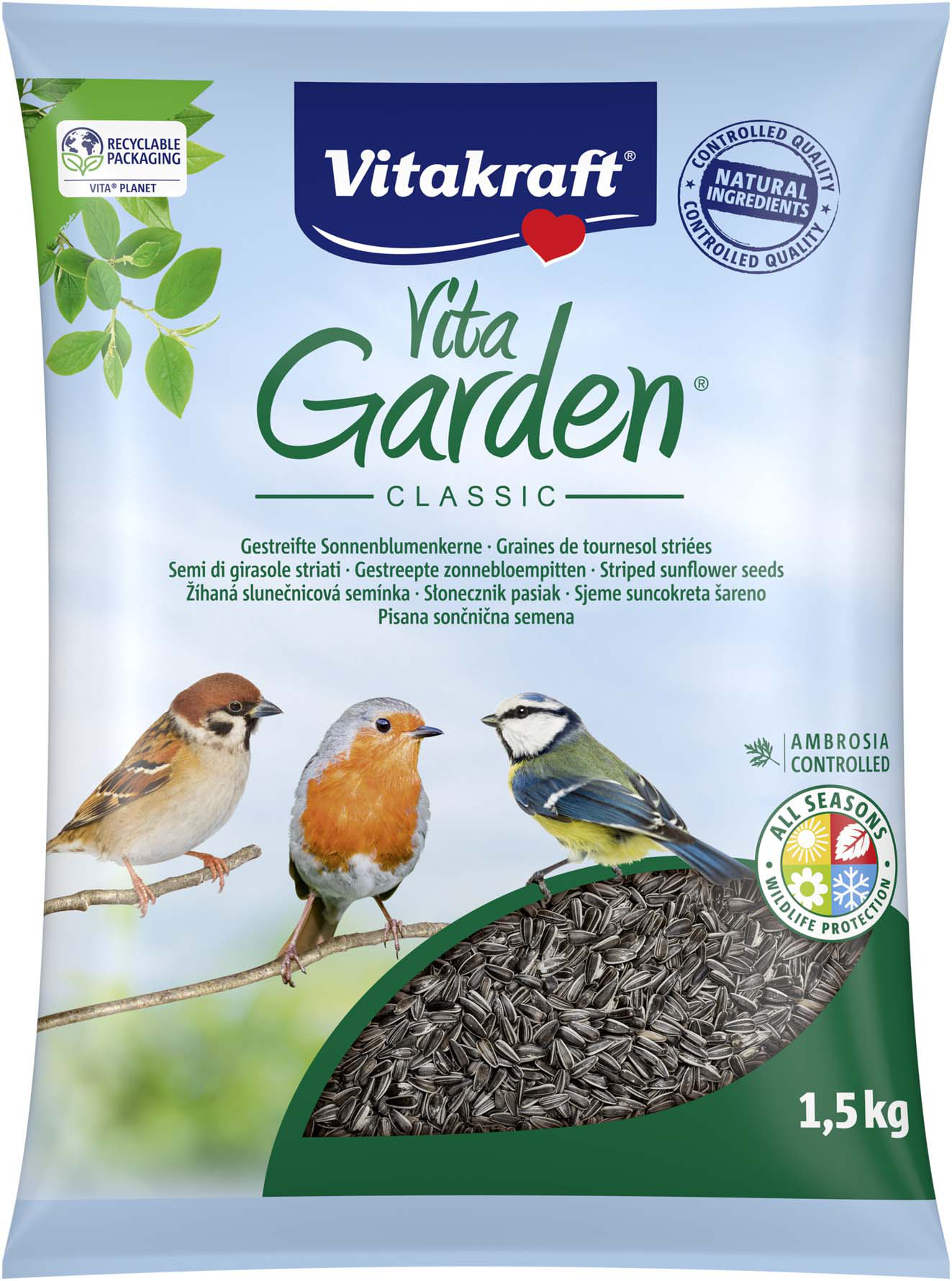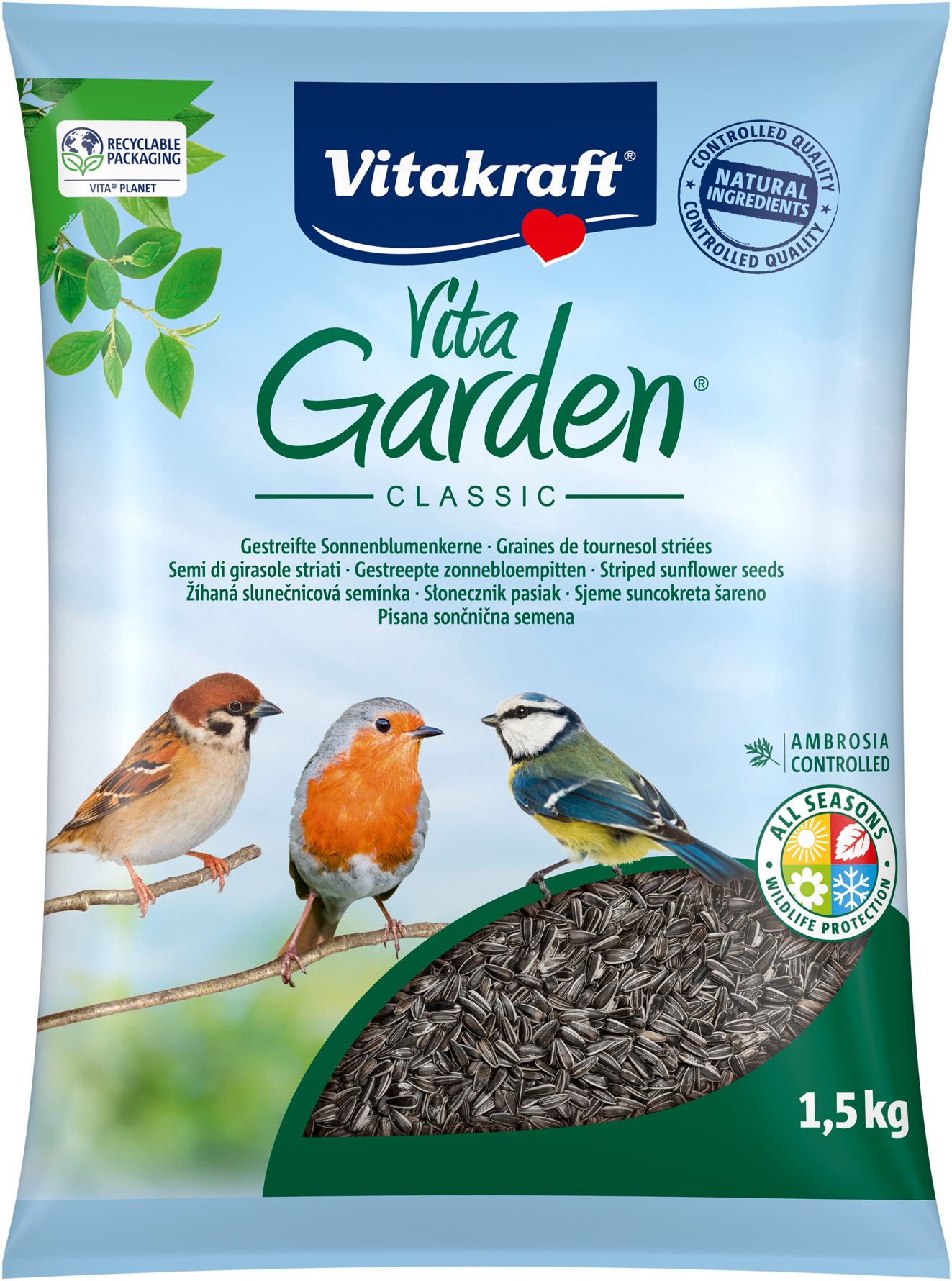 Parce que nos oiseaux des jardins ne peuvent pas toujours trouver assez de nourriture pour eux et leurs petits, graines de tournesol riches en protéines et en graisses pour faire le plein d'énergie et de vitalité.