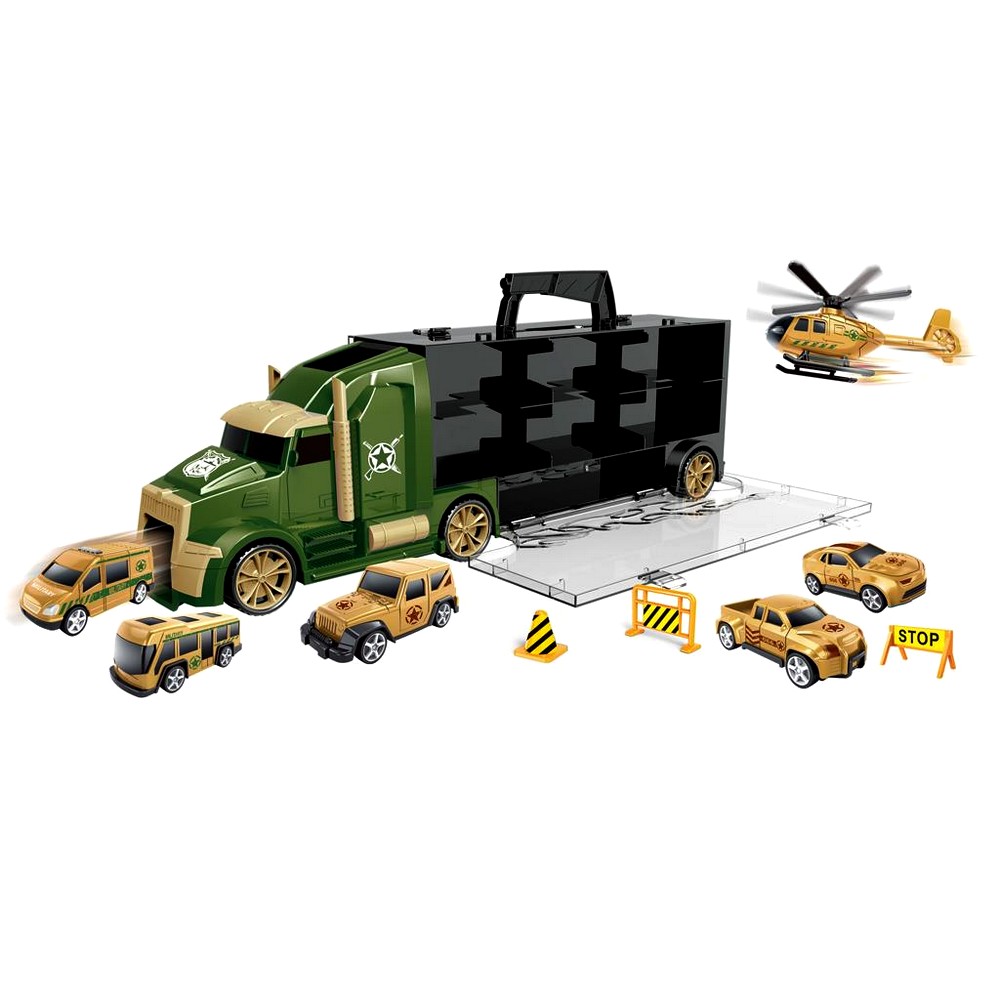 Grand camion de l'armee 5 voiture helicoptere jouet militaire