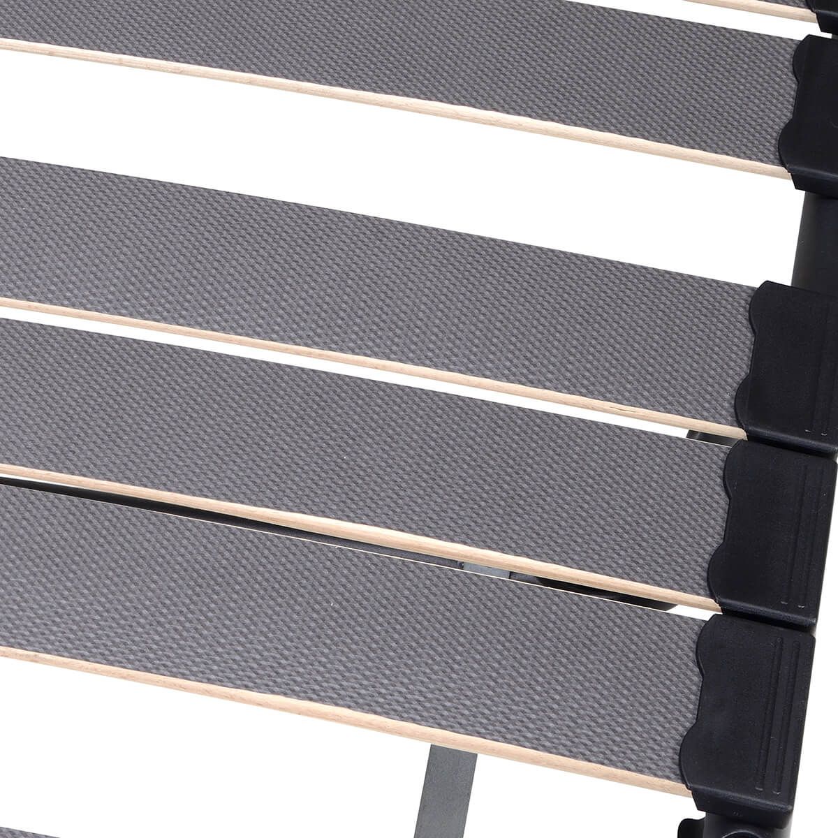 Sommier composé de 17 lattes larges 83cm. Structure en métal noir, monté sur 4 roulettes (à fixer soi-même).