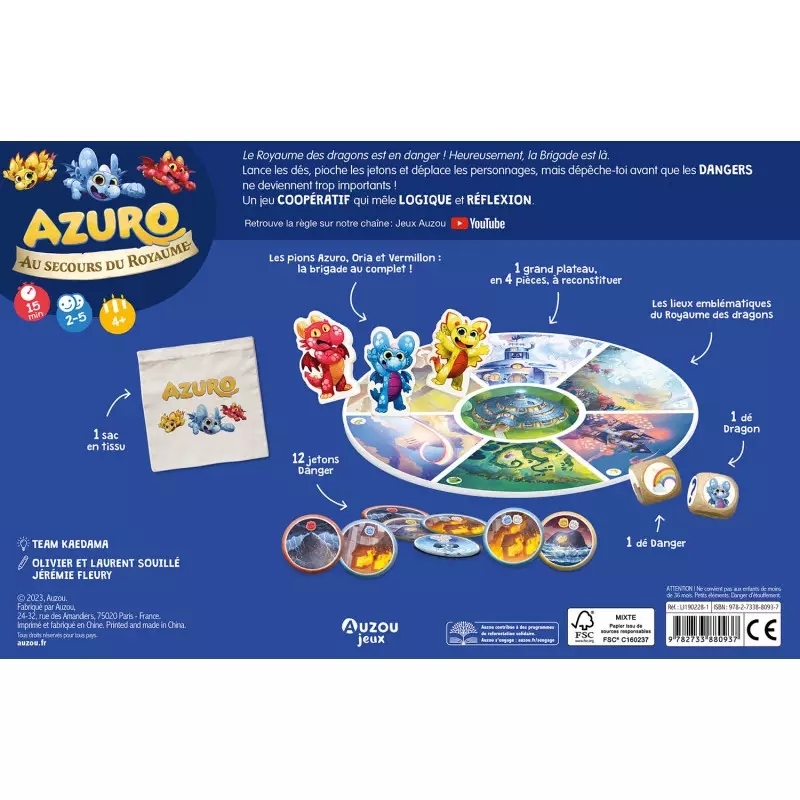Le grand jeu Azuro ! Un incroyable jeu coopératif, imaginé par la team Kaedama ! p Le royaume des dragons est en danger ! Heureusement, la Brigade des dragons est là ! br/ Ensemble, les joueurs vont devoir écarter des dangers. Le royaume sera sauvé lorsque huit dangers auront été écartés. /p
