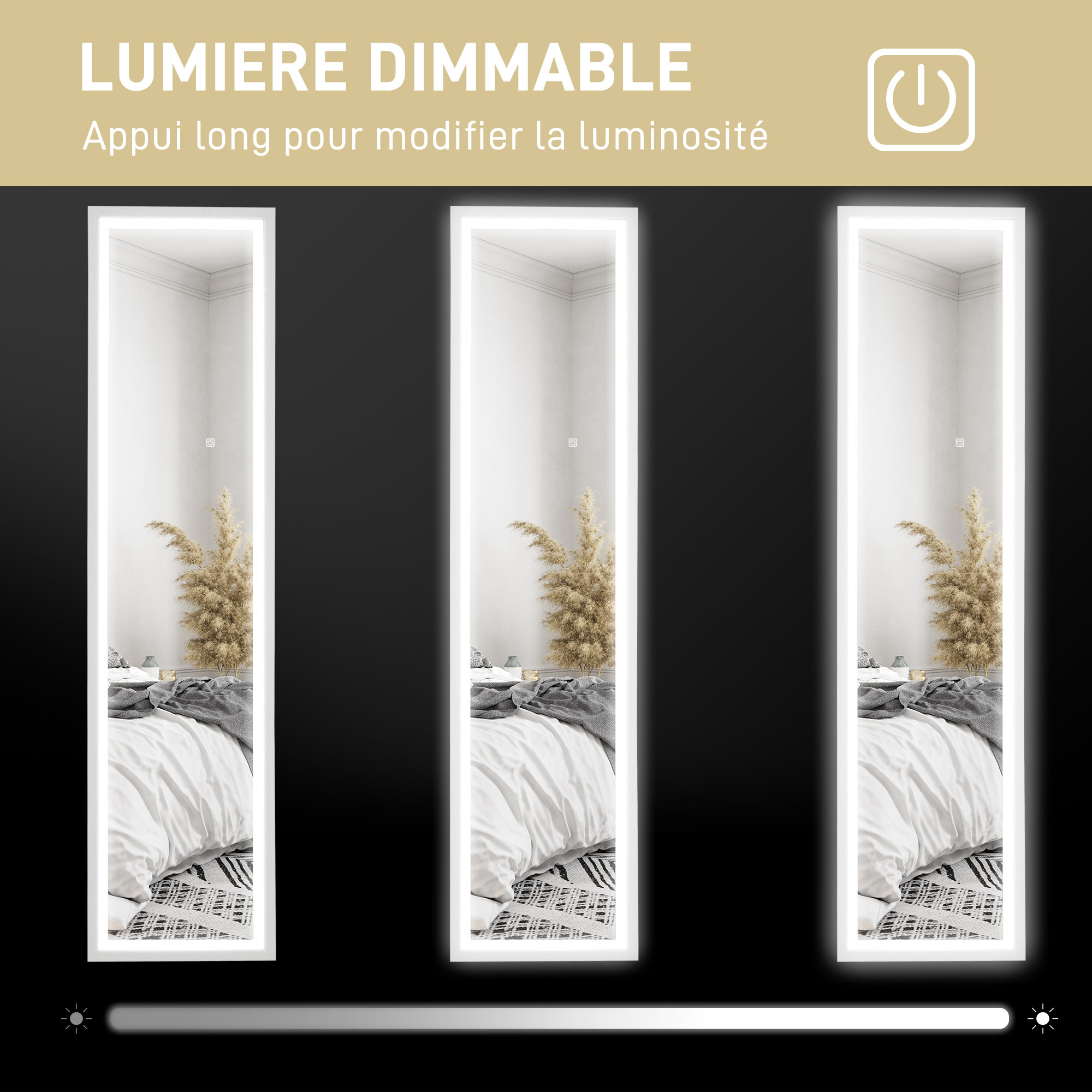 Grand miroir LED pleine longueur 40 x 160 cm autoportant ou à fixer - 3 couleurs luminosité réglable - ef