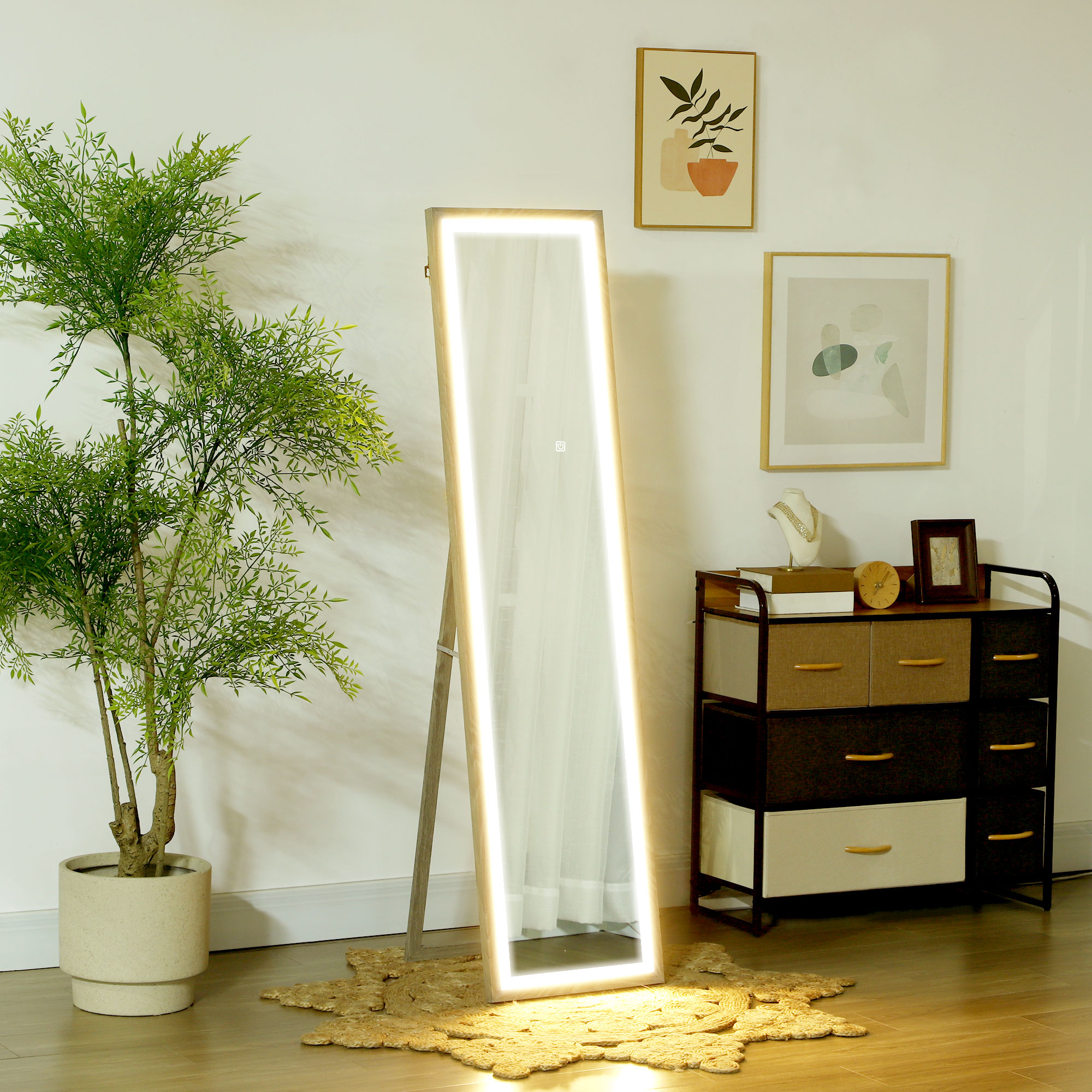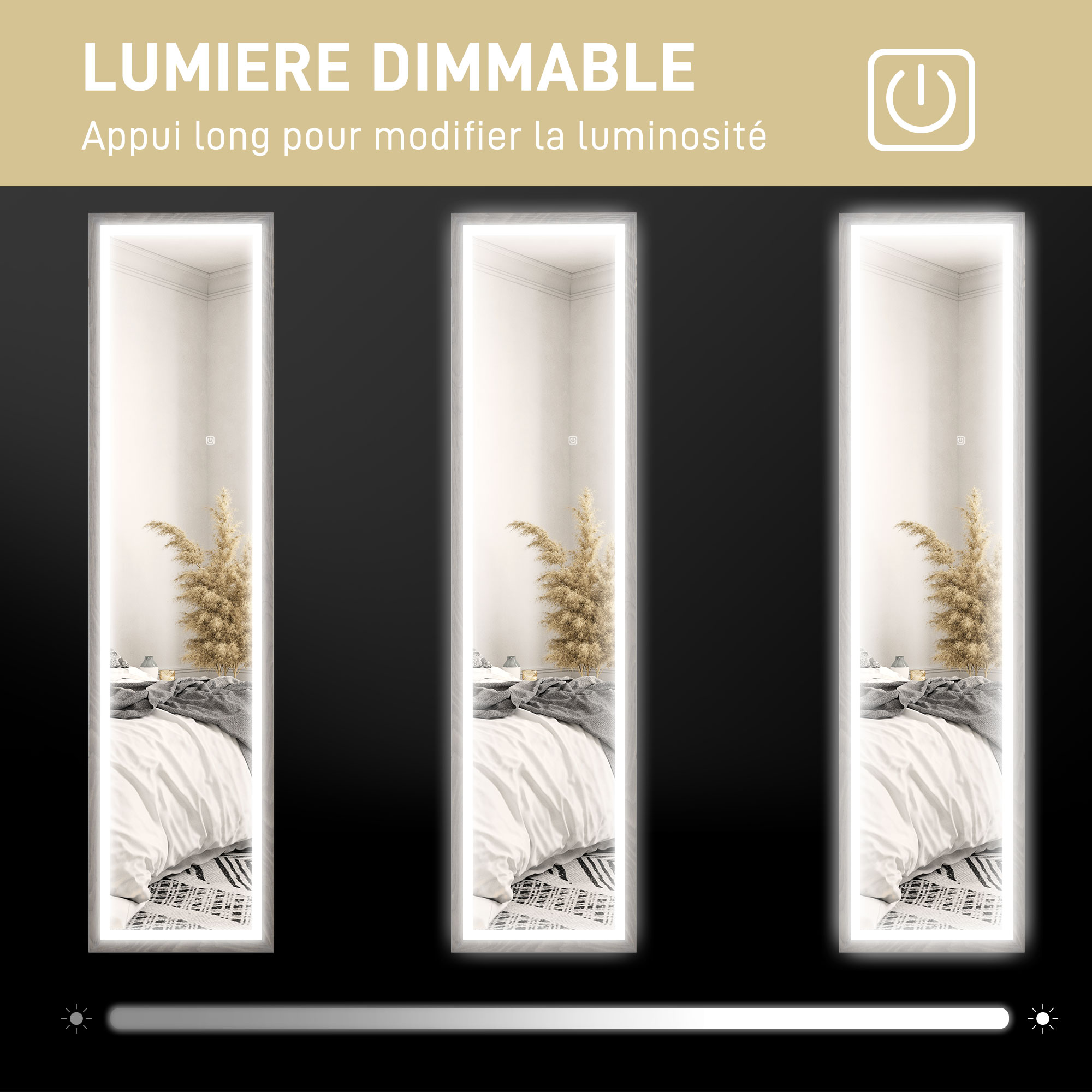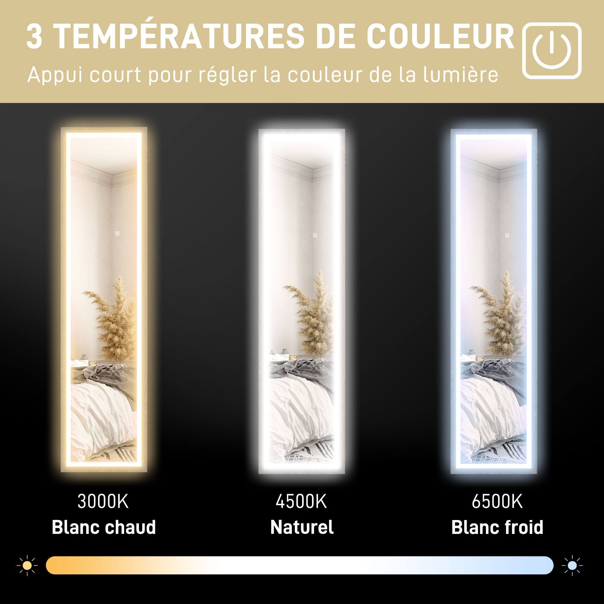 Grand miroir LED pleine longueur 40 x 160 cm autoportant ou à fixer - 3 couleurs luminosité réglable - ef