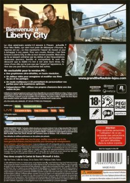 Retrouvez Liberty City dans la peau de Niko Bellic, un nouvel arrivant d'origine est-européenne, il doit réussir des dizaines de missions dans un environnement très vaste. Voitures, motos, camions, hélicoptères, avions, tout un arsenal à votre disposition, omniprésence de violence physique et verbale ! Grand Theft Auto IV est en fait un simulateur de banditisme qui propose également un contenu multijoueur et téléchargeable en ligne.