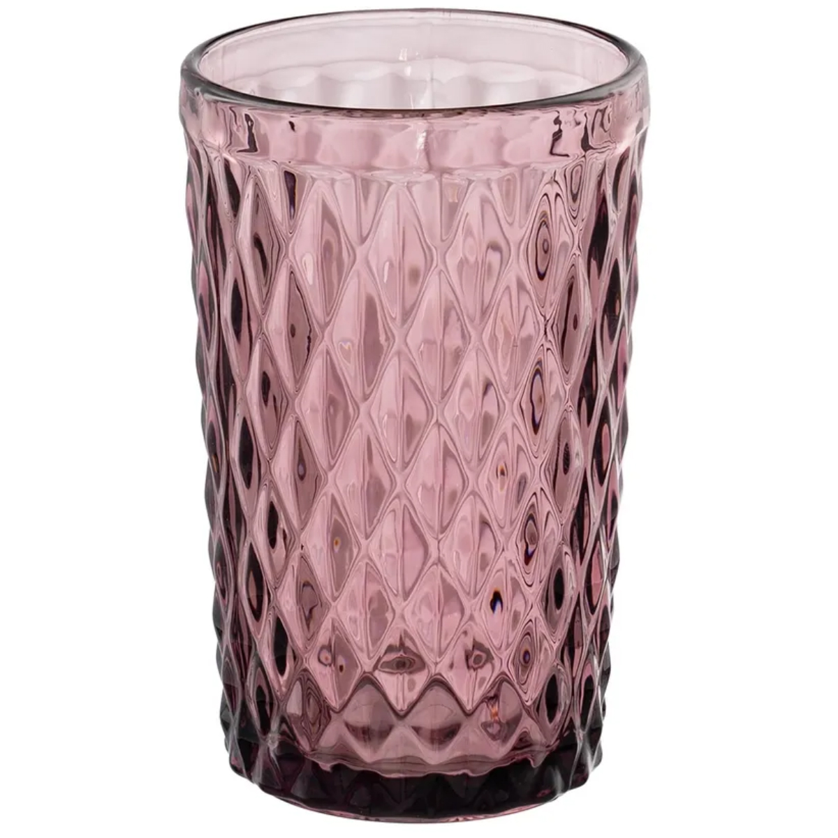 Grand verre rose 345ml Verre Dimensions : Hauteur 12.5 cm - Diamètre 8 cm Passe au lave vaisselle Ne passe pas au micro-onde