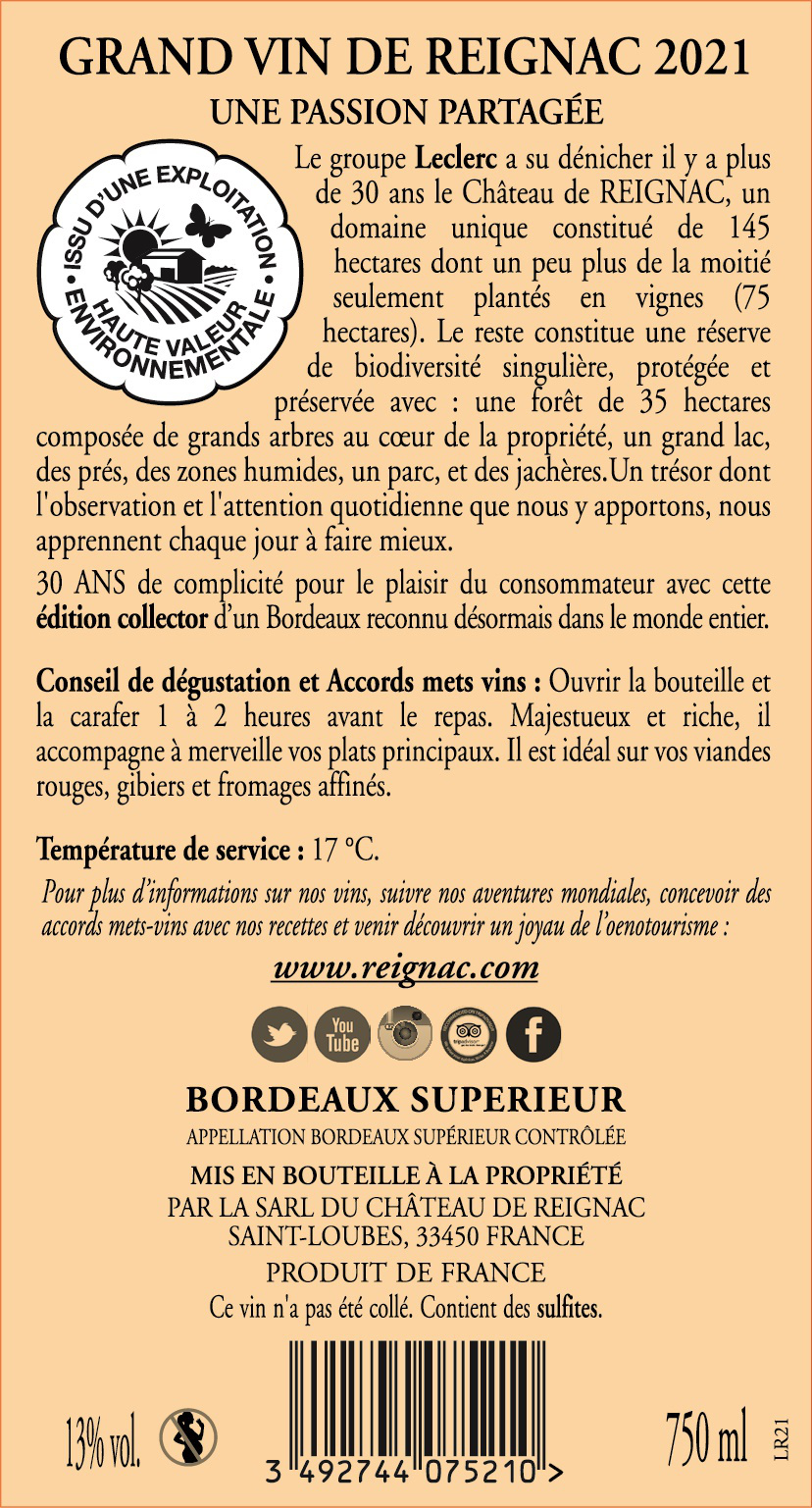 Libellé Grand Vin de Reignac, 2021 - Bordeaux Supérieur AOP - Rouge - 75 cl