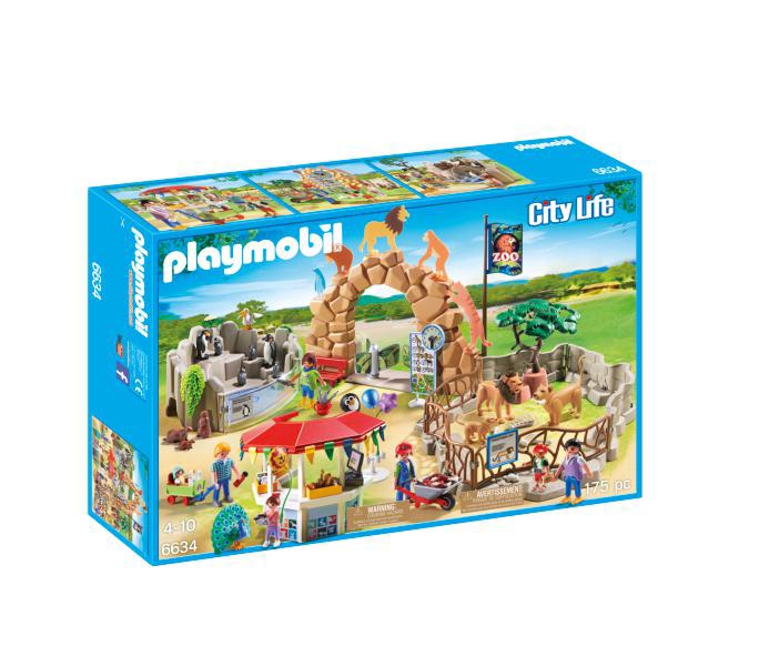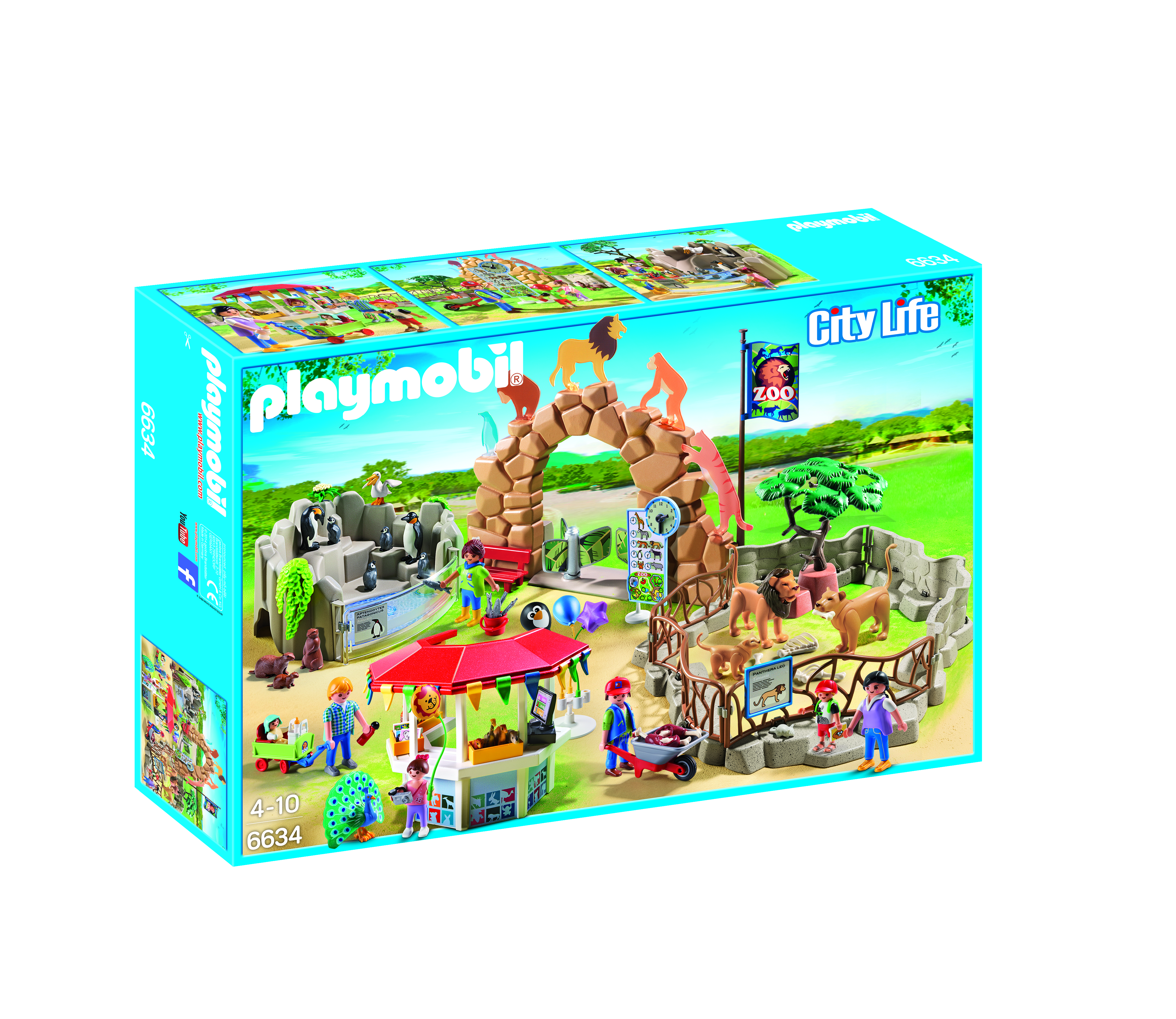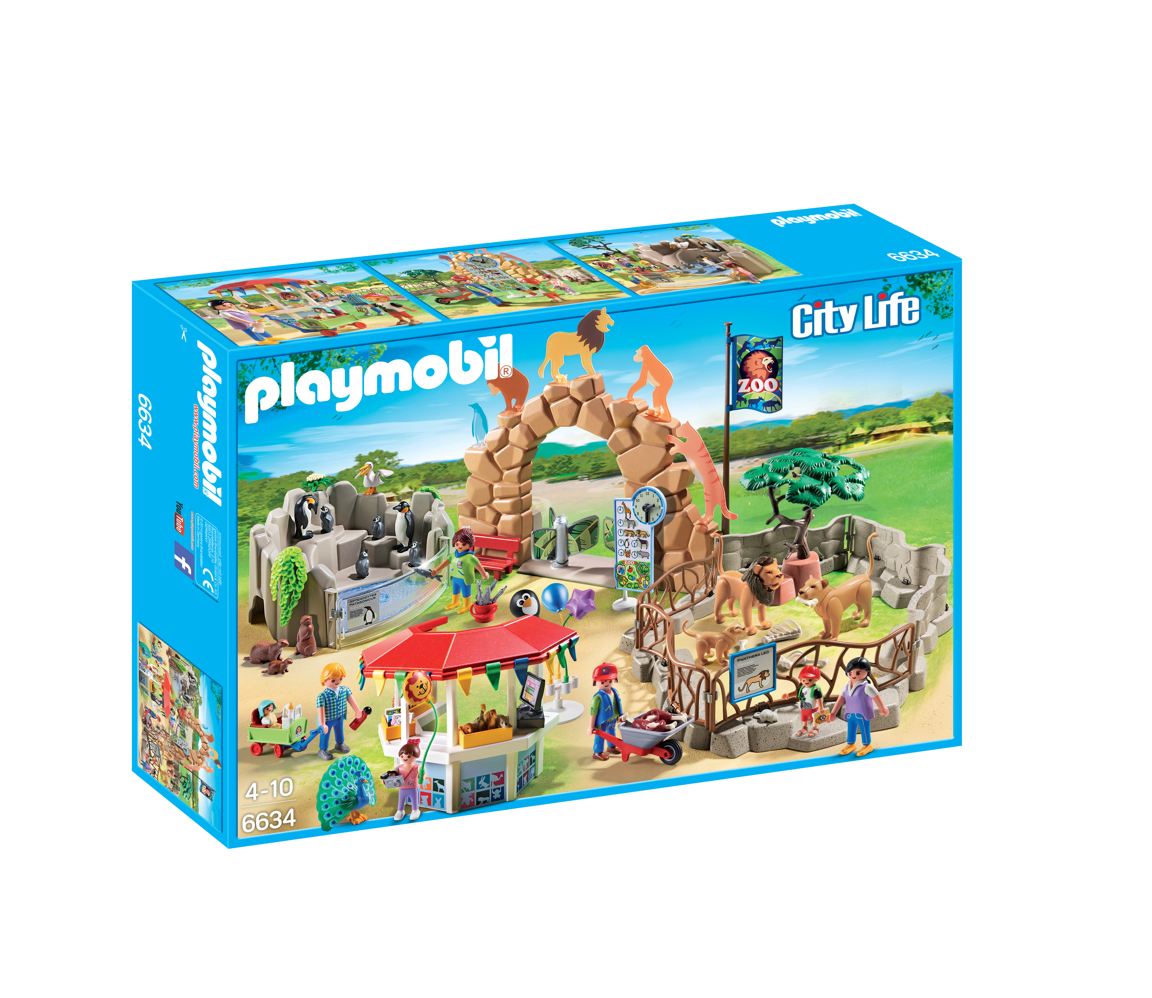 Il est trop mignon le bébé pingouin ! Grand zoo avec sept personnages, une caisse, une entrée, deux enclos distincts avec une famille de lions d'un côté et une famille de manchots de l'autre, des animaux (poissons, souris) et de nombreux accessoires (horloge réglable, ballons, panneau d'affichage,…).