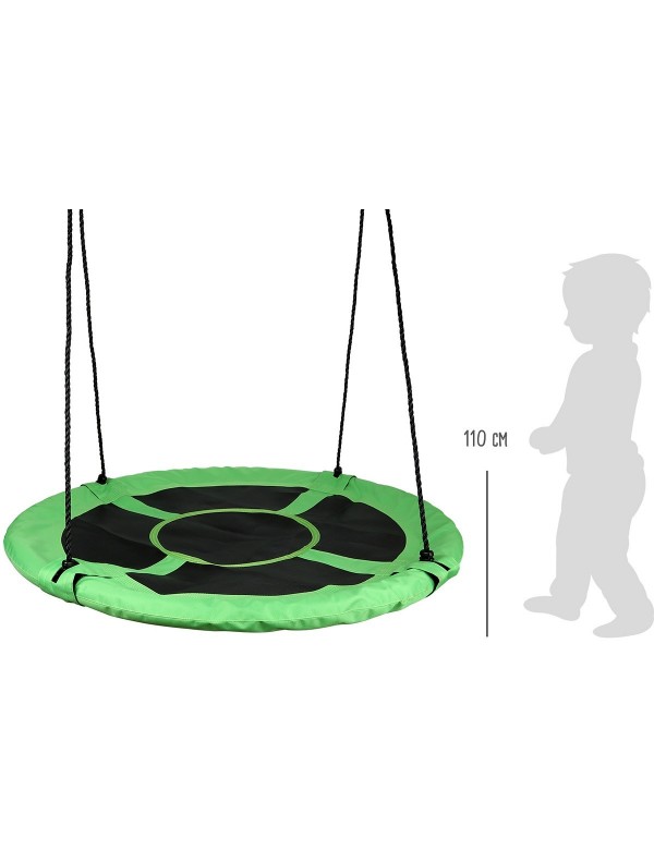 Se balancer encore plus haut! Cette balançoire en filet en matériel robuste permet de s'envoler haut dans les airs. Deux amateurs de balançoires peuvent prendre place sur la surface assise particulièrement grande. Pour que personne ne tombe de la balançoire en observant le ciel, la surface assise douce est fermée et donne encore plus de sécurité à l'intérieur et l'extérieur grâce au système de fixation stable. Grâce au matériel robuste et au système de fixation réglable en hauteur avec anneaux de retenue et œillets ajustables, cette balançoire en filet très fun est le jeu parfait à l'intérieur comme à l'extérieur.Balançoire solide en forme ronde pour jouer, rêver, balancer, lire, voler...Dimensions : Ø 110 cmHauteur: 180 cmPoids maximum supporté : 150 kgMatériel : métal, plastique et tissuAge minimum recommandé : 3 ansPoids : 3,79 kgFabrication européenne